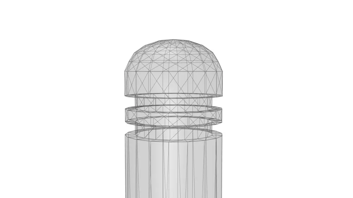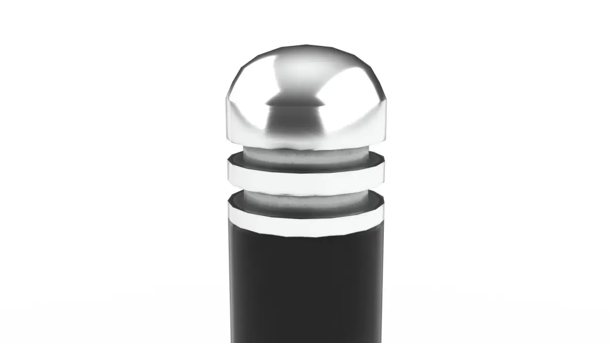 A contemporary black cylindrical bollard, stainless steel stem with stylish double-collar dome top. Perfect for city or urban landscapes.