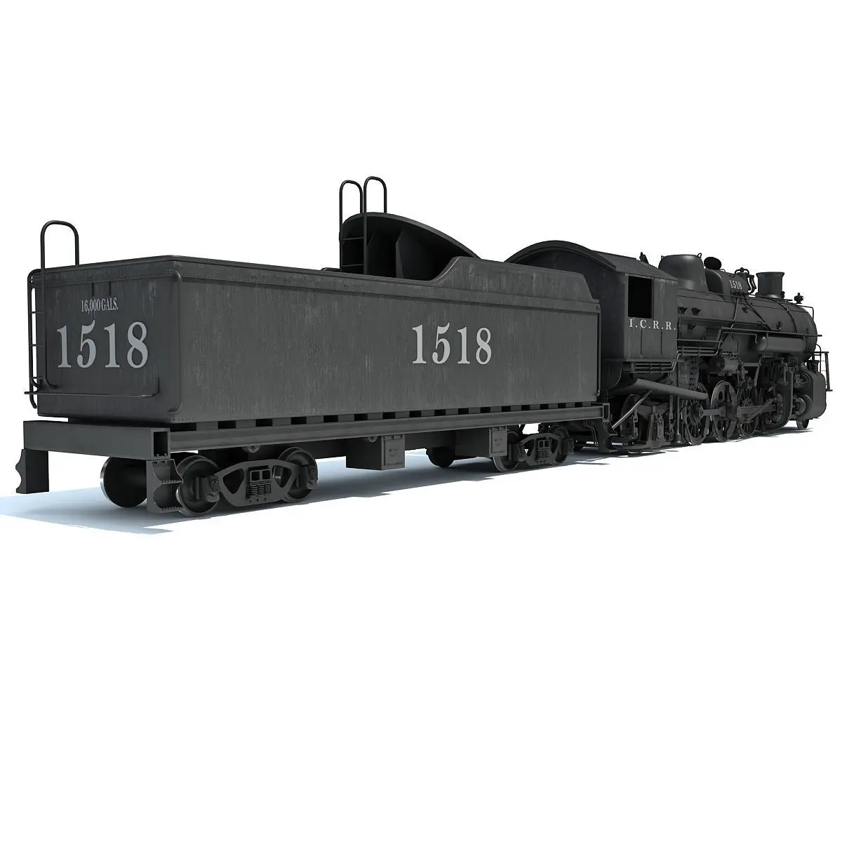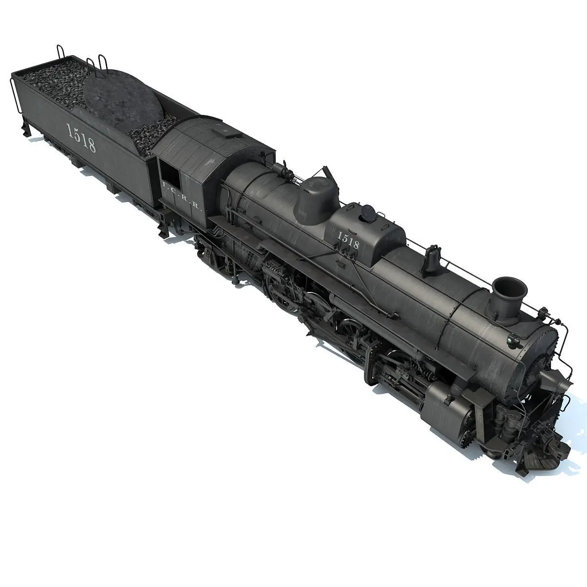 Extremely detailed and high-definition 3d model of a steam locomotive with coal car.