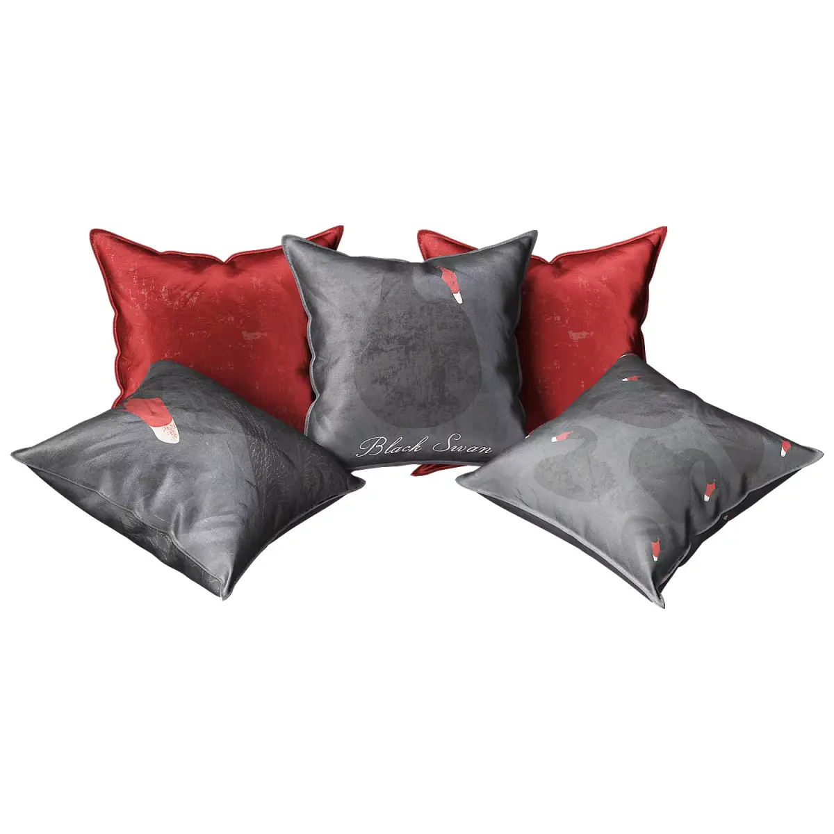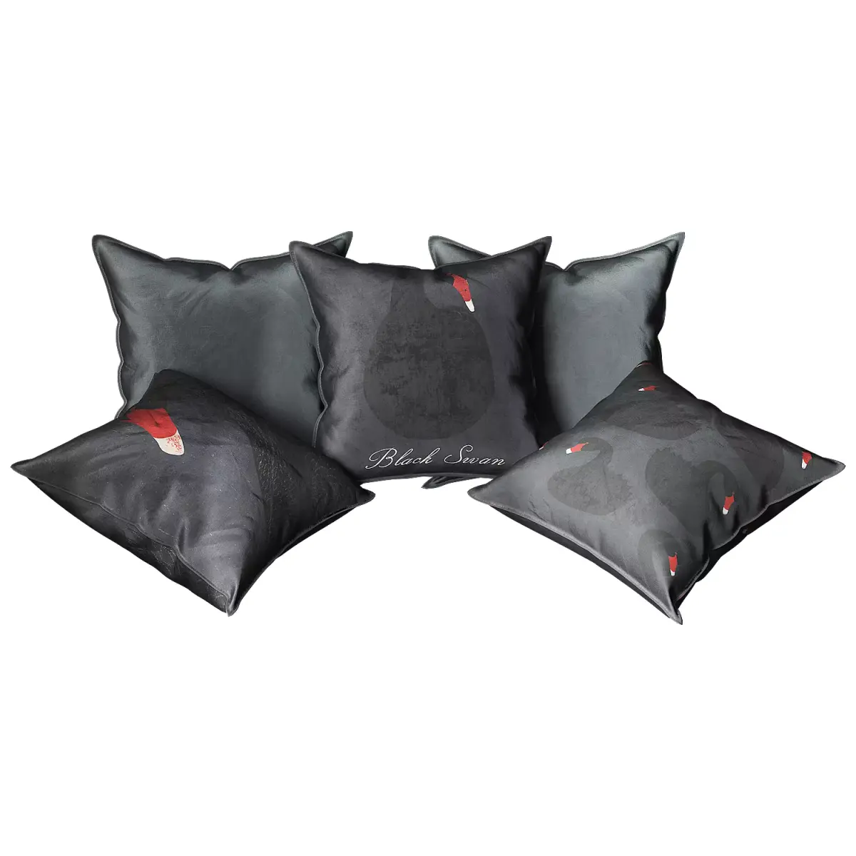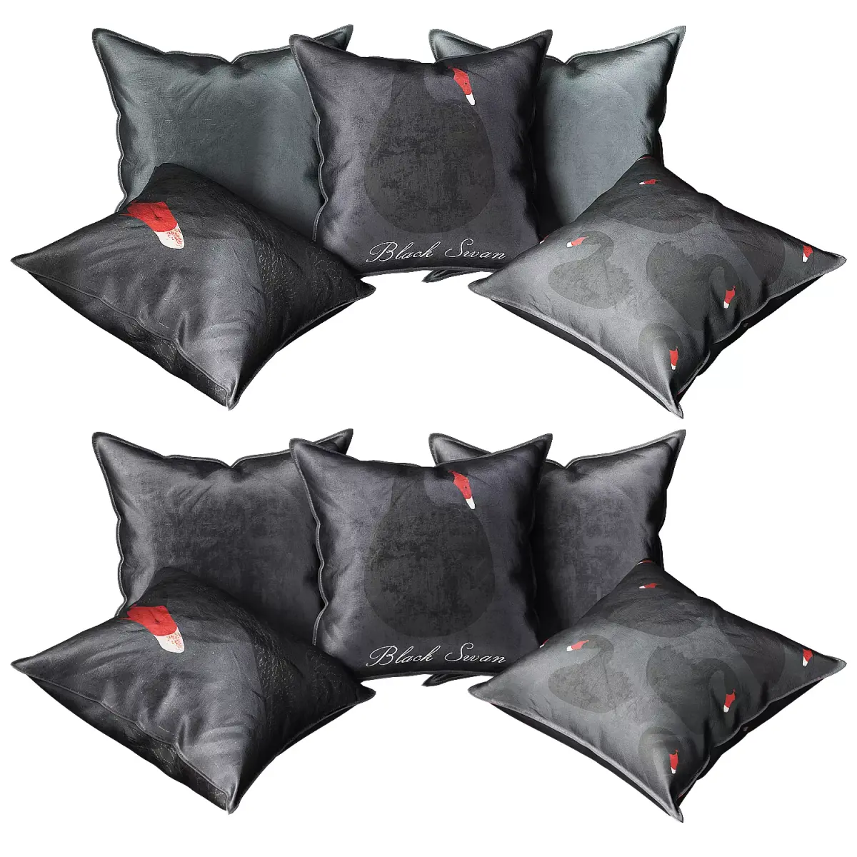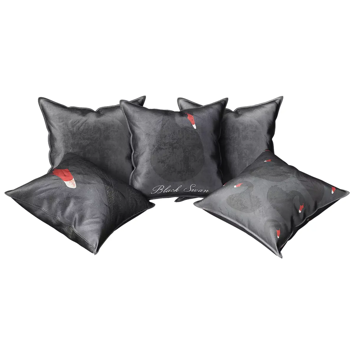 3D model of a set of decorative pillows: three variants of the Black Swan print + monochrome models. Optimized mesh, pure UV, 4K textures (silk). Ready for rendering and interior scenes.