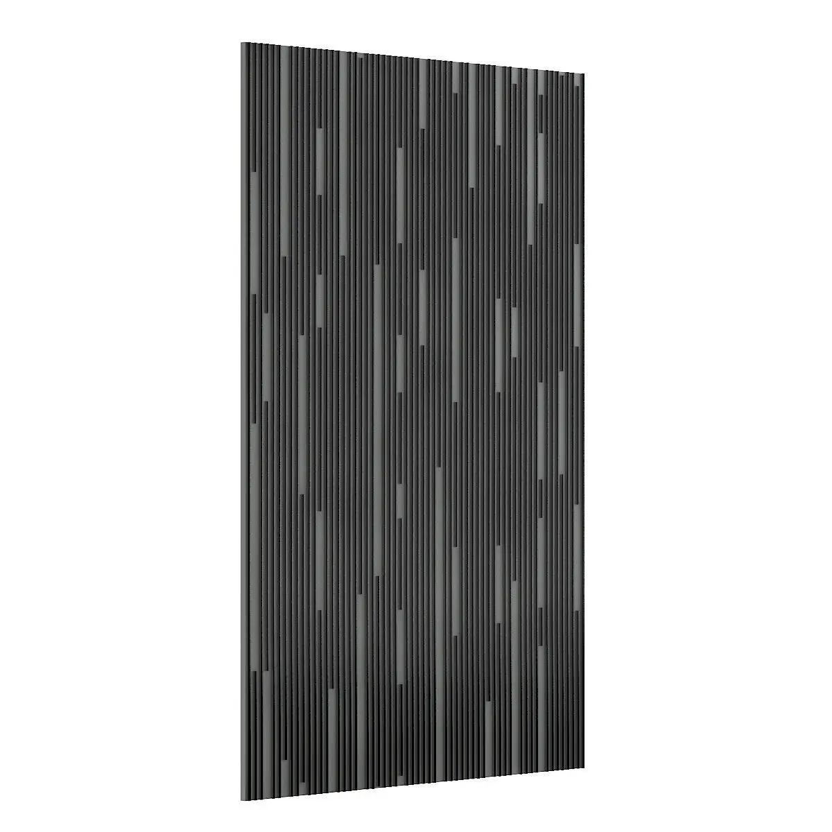 Black wall panel 3d model with vertical stripes. Modeled to have an option to create a seamless surface. Compatible with 3ds max 2010 (V-Ray, Mental Ray, Corona) or higher, Cinema 4D R15 (V-Ray, Advanced Renderer), FBX, OBJ and Unreal Engine.