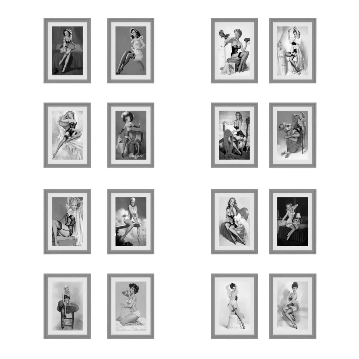Photo wall 3D model. Set of 16 pictures. Women. Retro.Size of 1 paint (with frame) is 235x325 mm.Size of all set is 1350x1600.