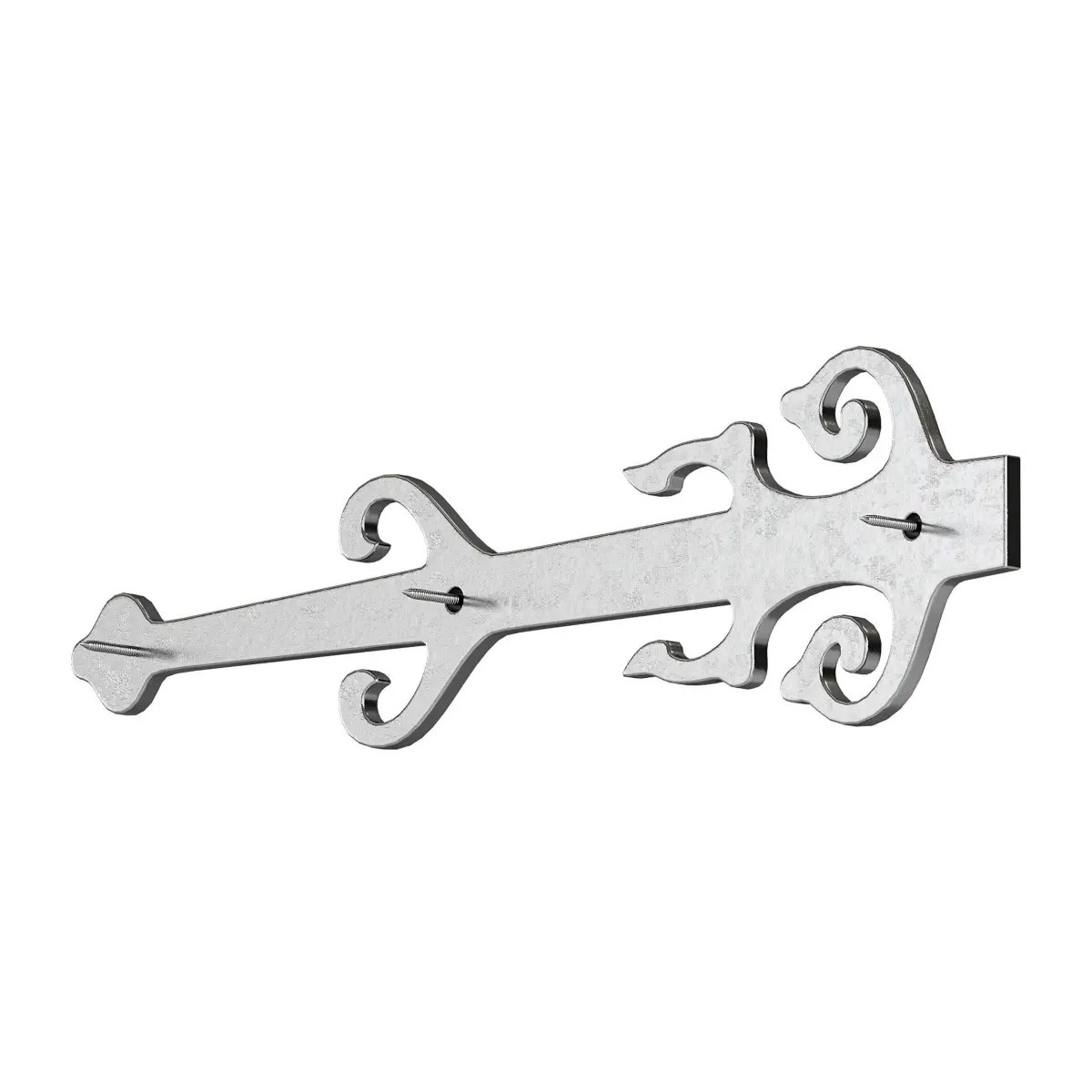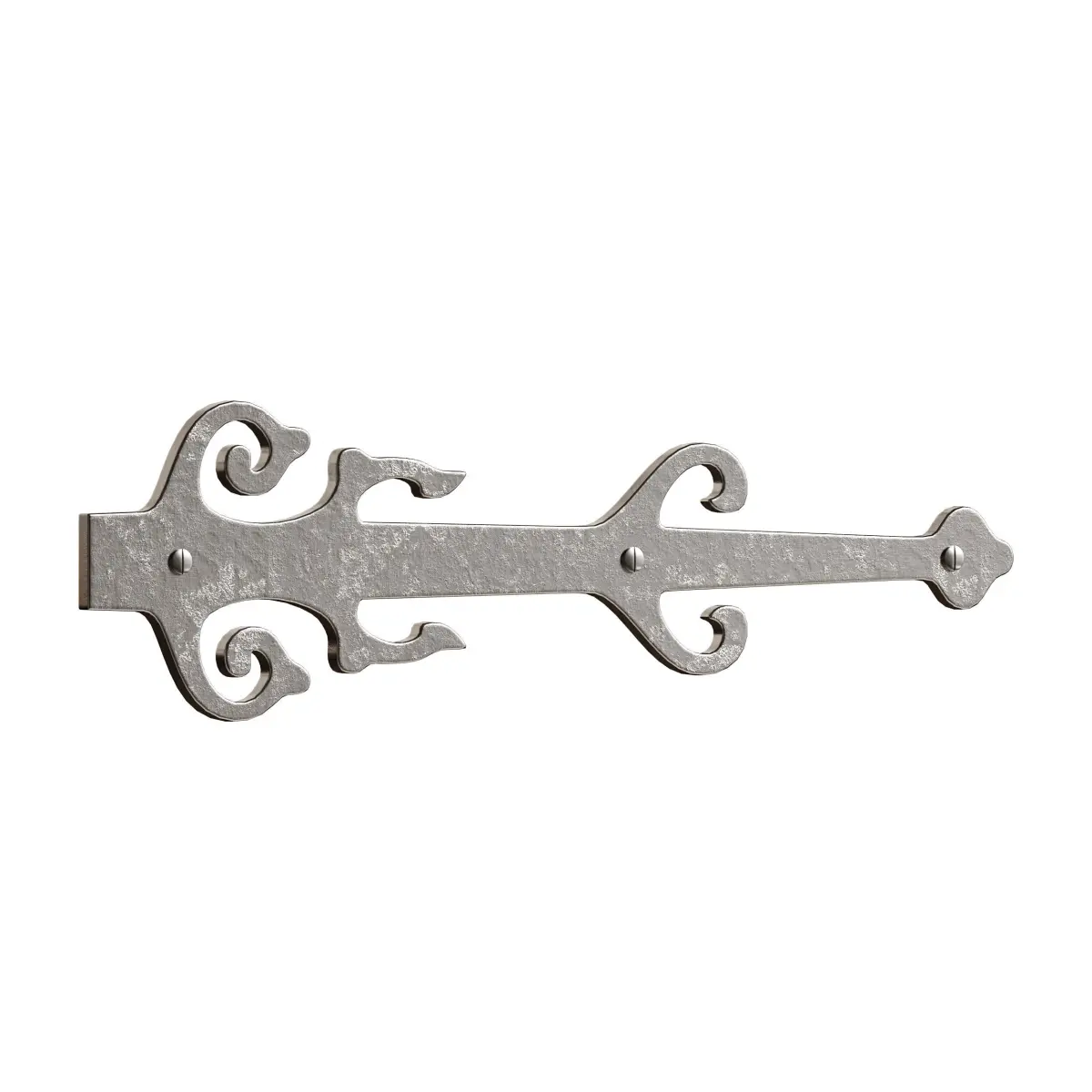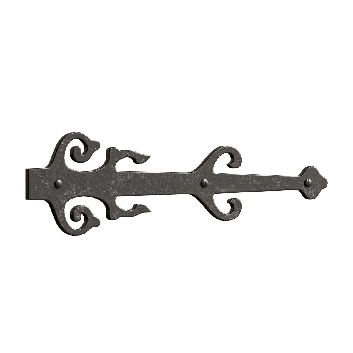 Name: Black Wrought Iron Garage Door Decorative Hardware Poseidon Trident Design 12 in Rust Resistant Dummy Strap Hinge with Mounting Hardware