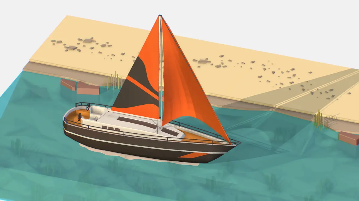 Black Yacht Scene Motor Boat Black Low-poly 3D model