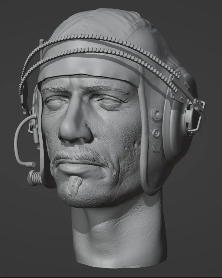 Blade Runner--Gaff in his pilot's hat. This highly detail piece (2 million polygons) is water tight and was made for 3D printing. Dimentions: 37.67 mm x 50.52mm x 36.79mm The scale works with 1/6 figures but can be scaled to suit your needs. Four file formats offered: .stl, .fbx, .obj, .amf
