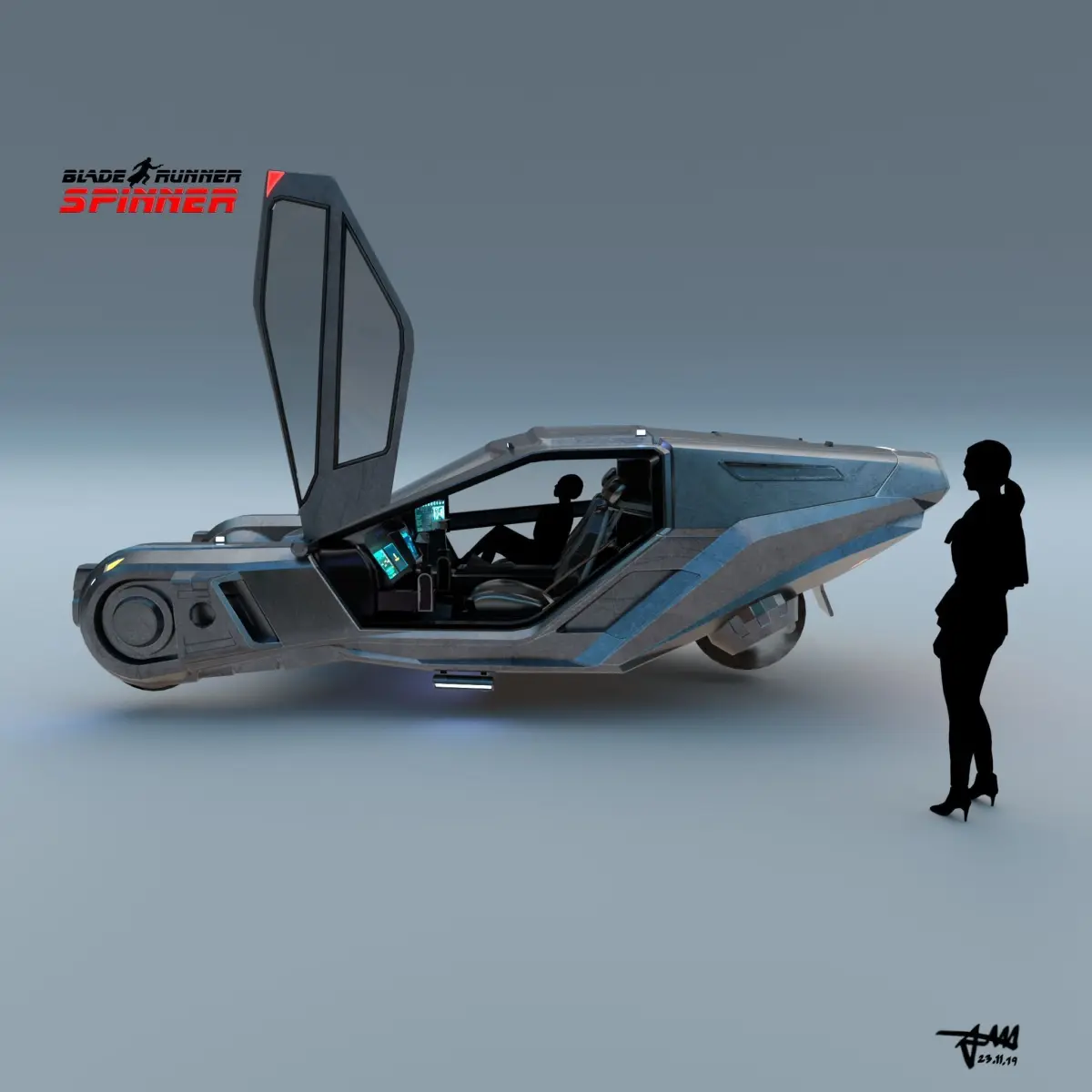 Personal interpretation in 3D of the legendary Bladerunner 2049 flying vehicle with clean uvs, basic PBR 2K color maps ready for study or animation. For more details check my spinner 3d artstation project in the link here: https://www.artstation.com/artwork/qAz0dP