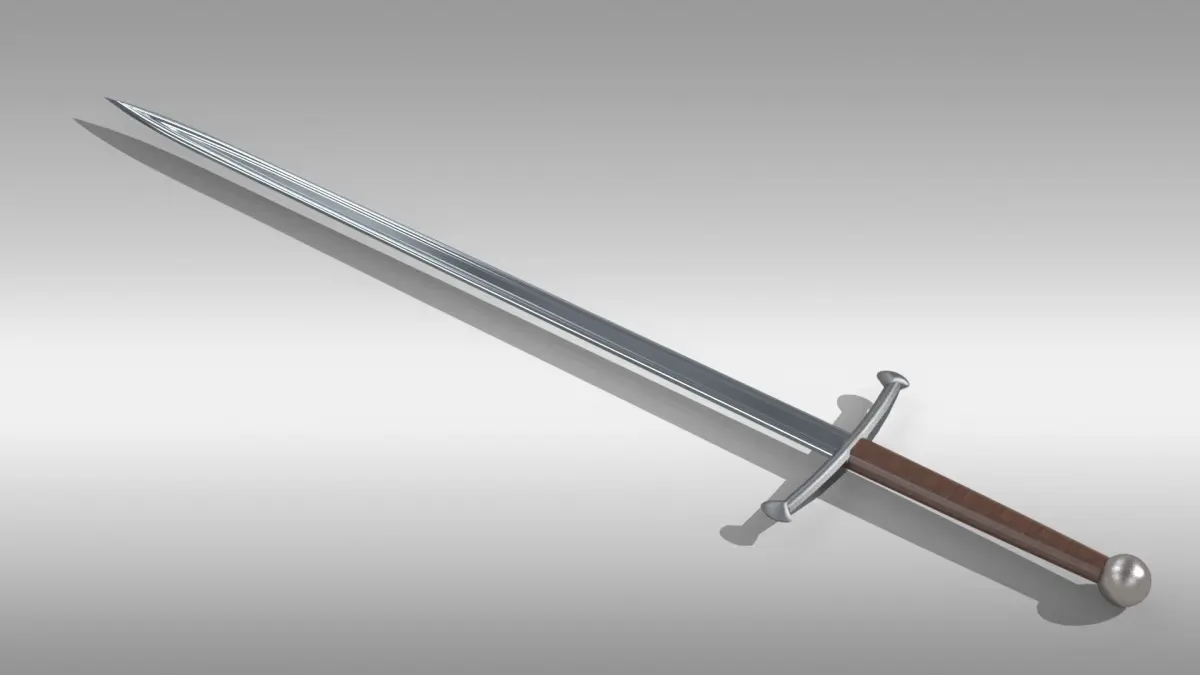 - Trident spear , with thick blade, leather wrapped handle and a heavy counterweight pommel.