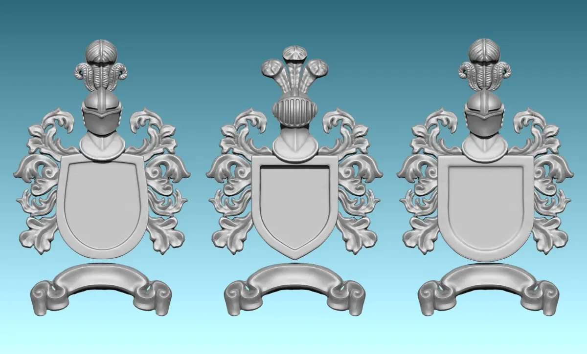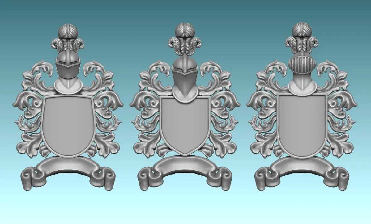 Set de piezas intercambiables con el que podrás creas diferentes Escudos de Armas, incluye 3 Yelmos, 12 tipos de escudo, Pergaminos, Plumas, Hornamentos....