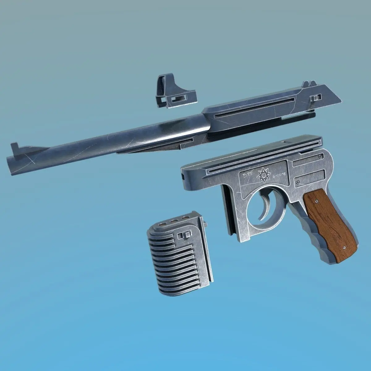 In order to optimization, textures and 3D files are in different archives.Just unpack them as they are in one folder, all dependencies are saved.ZIP packages are designed in such a way that they are unpacked into one folder (Blaster_DL_50), with all dependencies saved, and subfolders.So nothing duplicates.Do not forget to unpack textures.