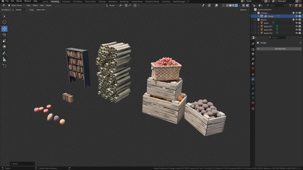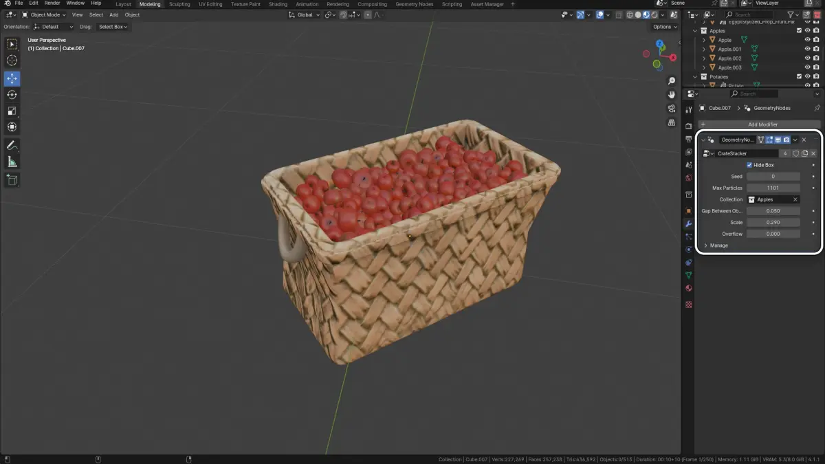 Ideal for game developers, animators, and VR creators, this pack provides a suite of powerful geometry nodes to organize and stack various objects with precision and flexibility. This setup is essential for every 3D modeling artist, offering unique stacking solutions for all types of scenes.