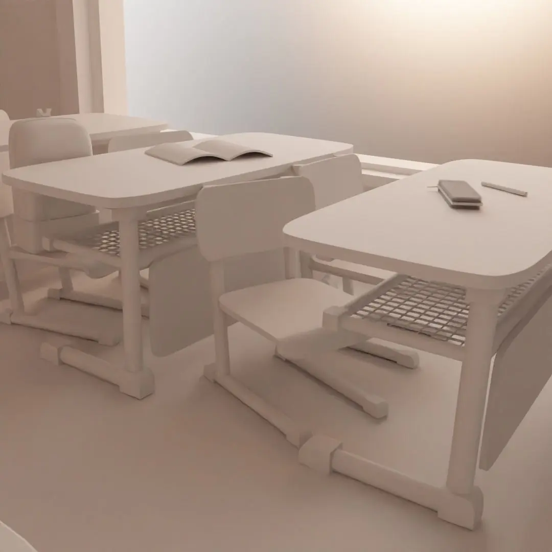Blender class room rendered by cycles. Contains 3 desk with 2 chairs each and some small materials including pouch, bag, book, pen etc. Some class quotes with some windows and HDRI.For any problems with the model you can dm me via @therealnikunj and also checkout for more models at my account. Also textures are given you need to just select them to add them to the material. Hope you like it :).