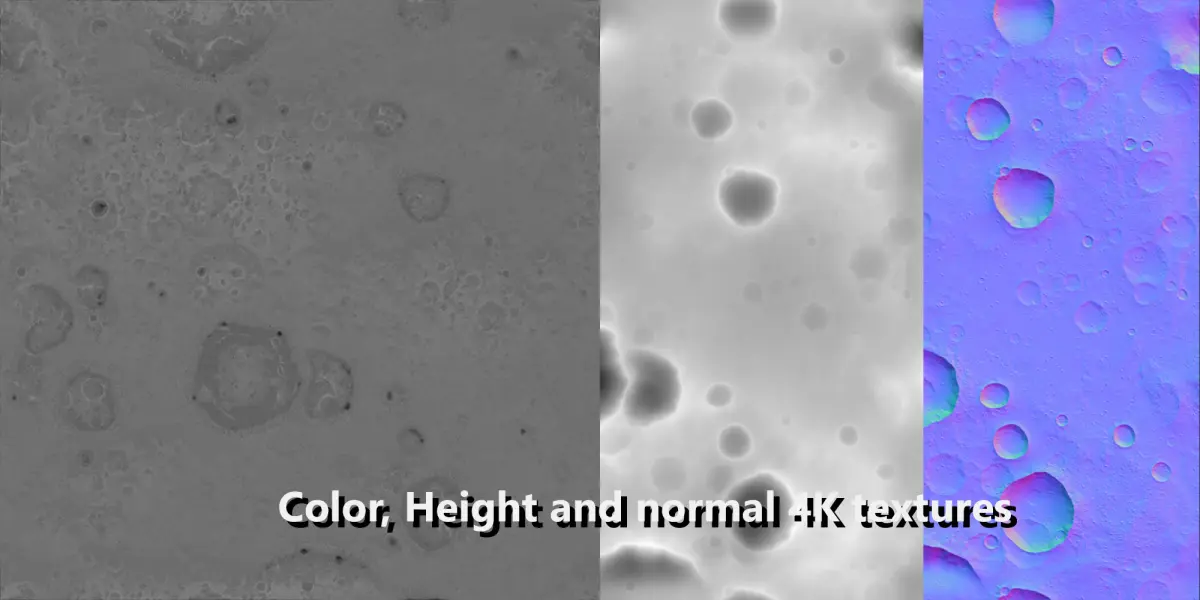 .tif 16bits 4K mapsHeight (displacement map)Normal mapColor map