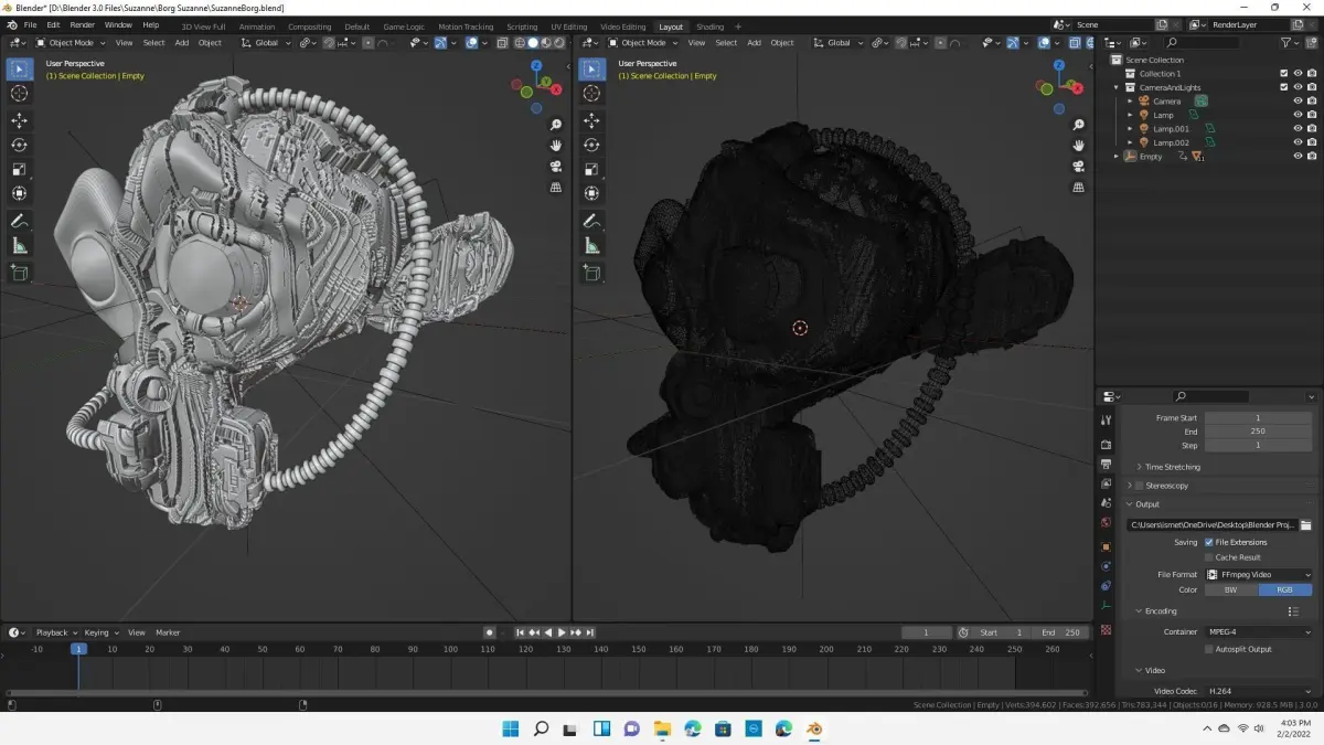 I have been playing around with making different unique versions of Blender's Suzanne Monkey into various fun and interesting versions. This particular version is inspired by Star Trek The Next Generation Borg character.