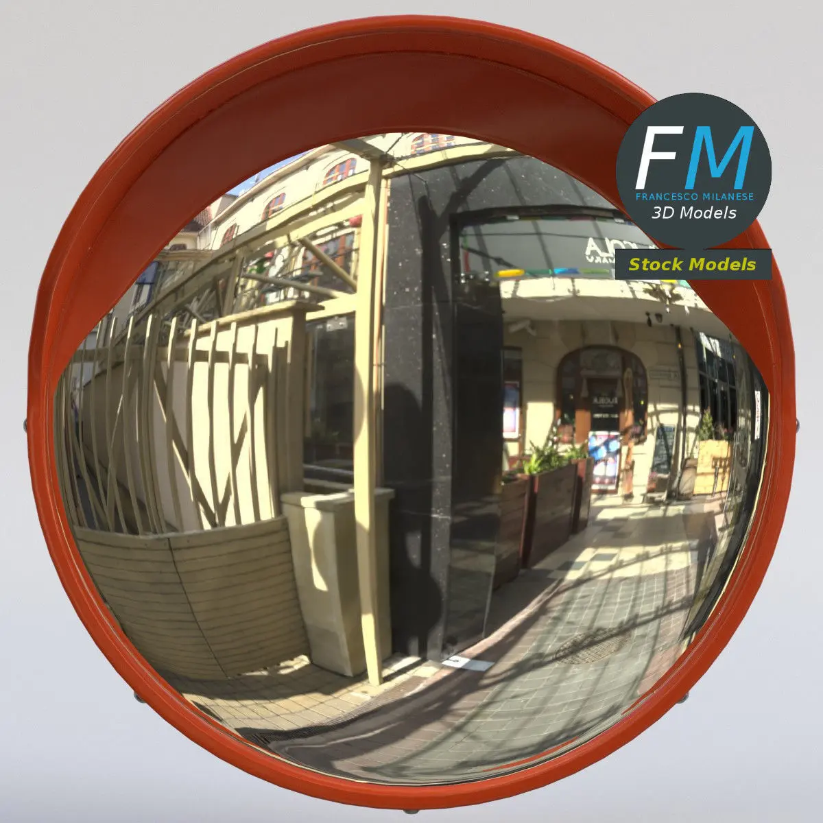 Blind spot traffic mirror 3D Model (driveway mirror, convex mirror, road mirror), for streets, garages, stores, parking lots, warehouses, supermarkets, driveways, ... Nr. 2 in my collection. The bolts are in a different object, so you can easily remove them to lower the poly count. Production-ready 3D Model, with PBR materials, textures, non overlapping UV Layout map provided in the package.Quads only geometries (no tris/ngons).Easily customizable: UV unwrapped geometries; UV Layout maps provided in the package as png with alpha images.Each Object, Material or Texture provided in the package has a unique, meaningful name.Made in Blender 3.3 with Cycles Principled BSDF PBR shader with textures included (Eevee compatible), then exported to OBJ and FBX; materials and textures made in Substance Painter (Adobe 3D Painter), exported for PBR, Cycles, V-Ray, Unity, Unreal.PROMO IMAGES: the first image has been rendered in Cycles for Blender; in particular, you can find 11+ promo images in this description:
