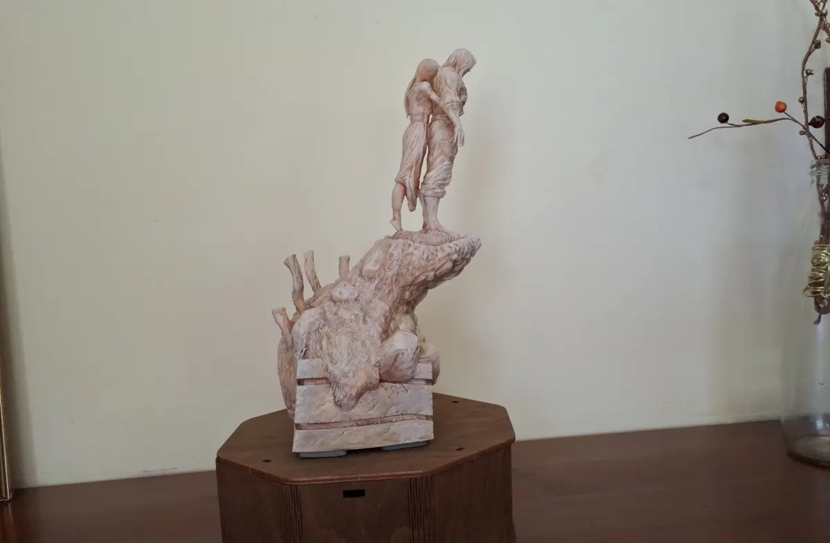 In the model both characters are meant be representing the one holding and the one surrendering, accepting. I like to see them as different wills we can find in ourselves.
