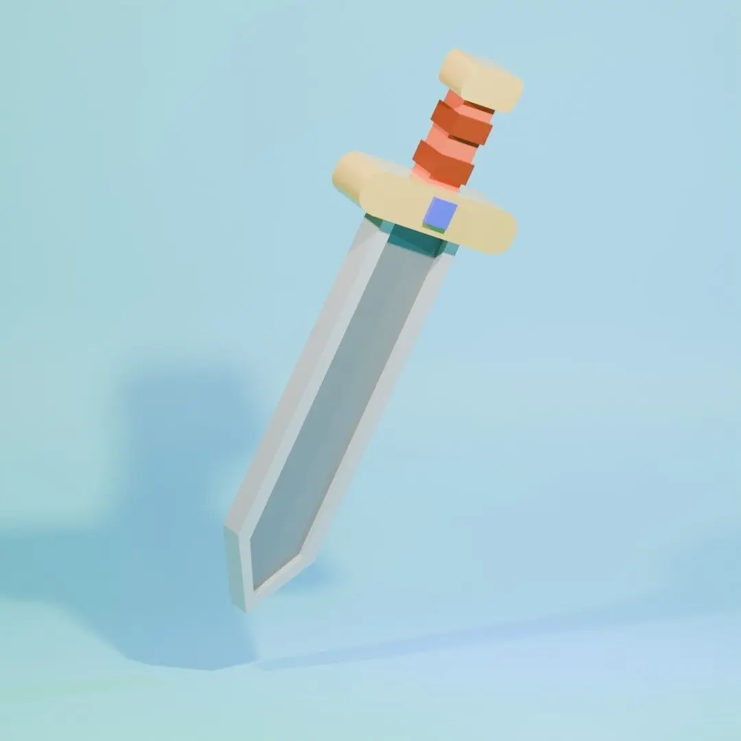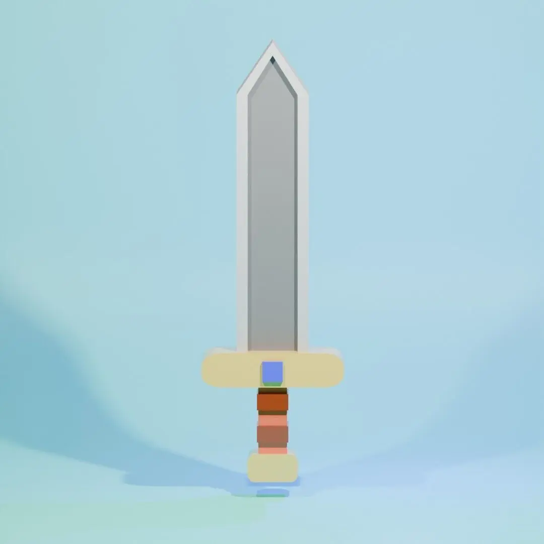 Block rubbery Sword that refference from voxel object, with some material zero roughness that make look rubbery. It can be use for game asset or 3D print for toys