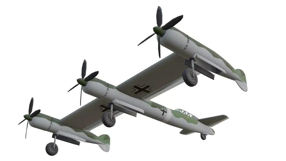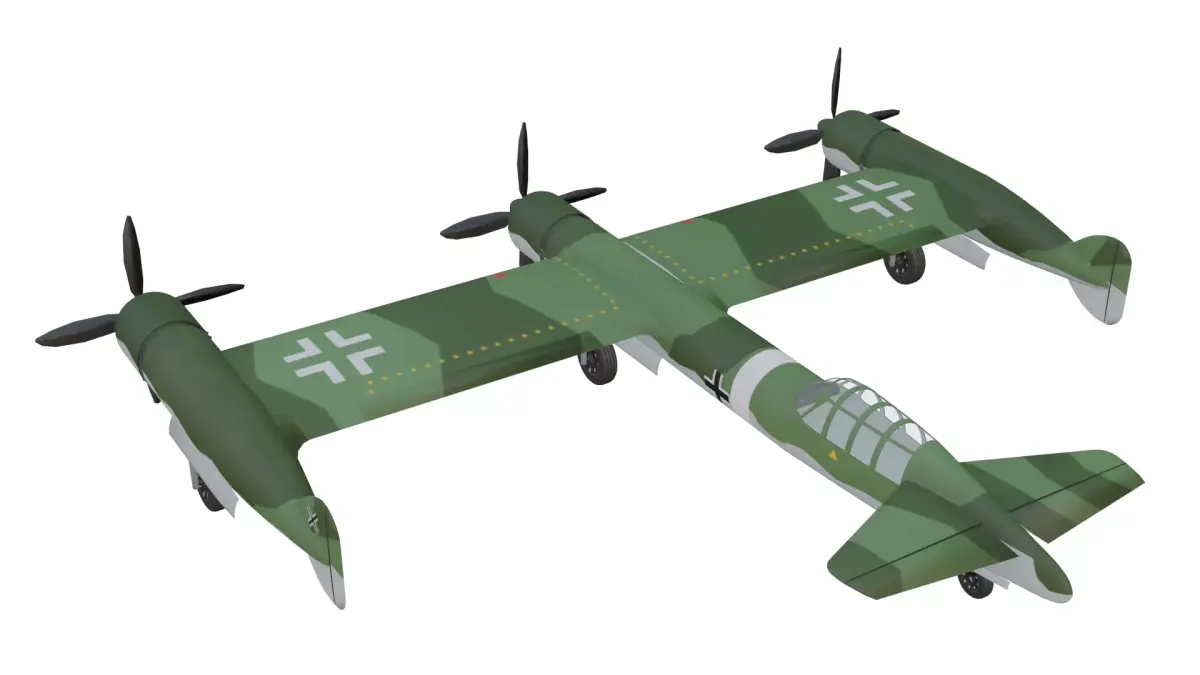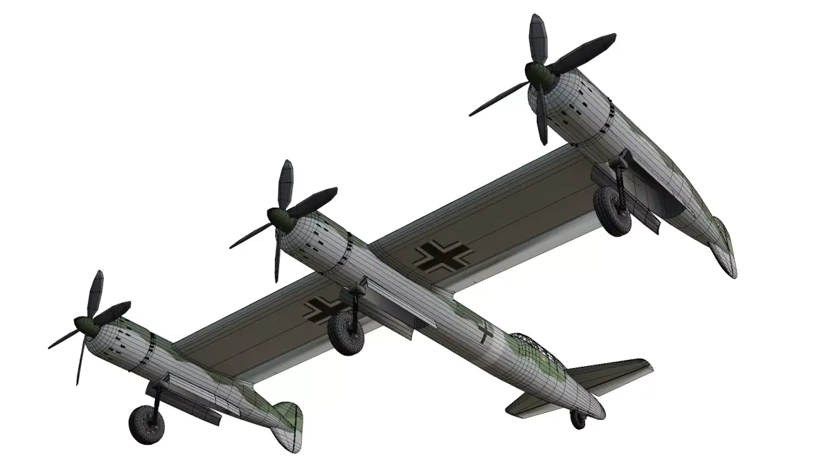 The Blohm & Voss BV P.170 is a high quality, photo real model that will enhance detail and realism to any of your rendering projects. This model captures the radical three-engine asymmetrical layout of the proposed German fast bomber, featuring its central fuselage flanked by two outboard engines on straight wings and a distinctive triple-engine configuration designed for high-speed performance.The model has a fully textured, detailed design that allows for close-up renders. Renders have no postprocessing.