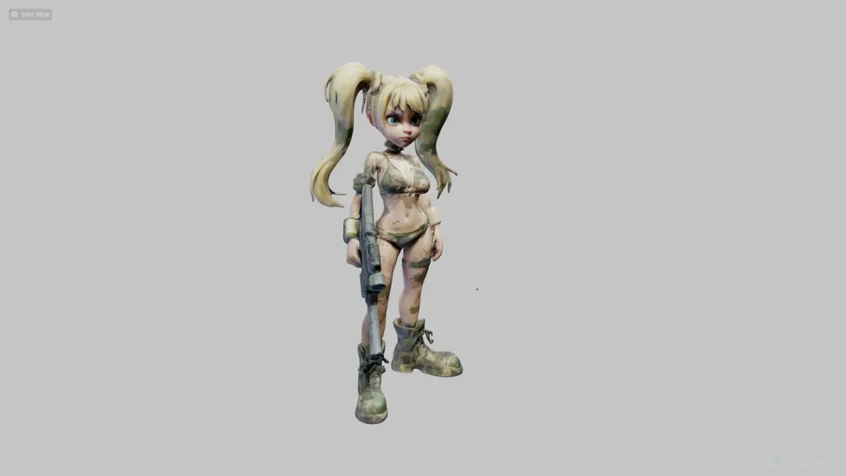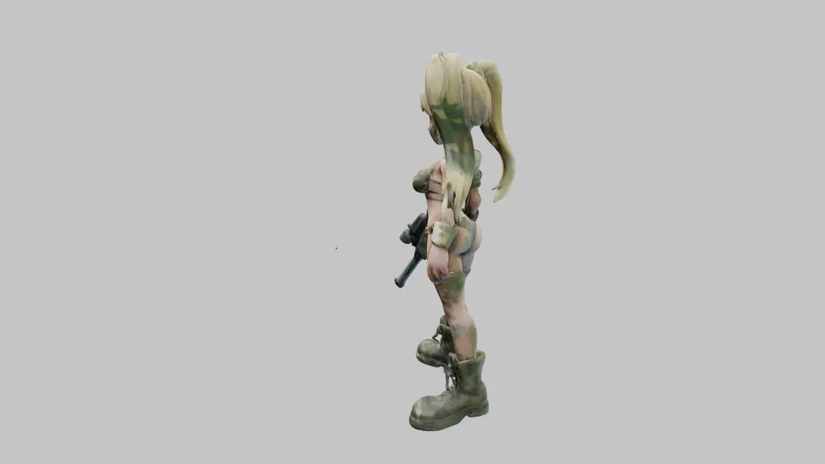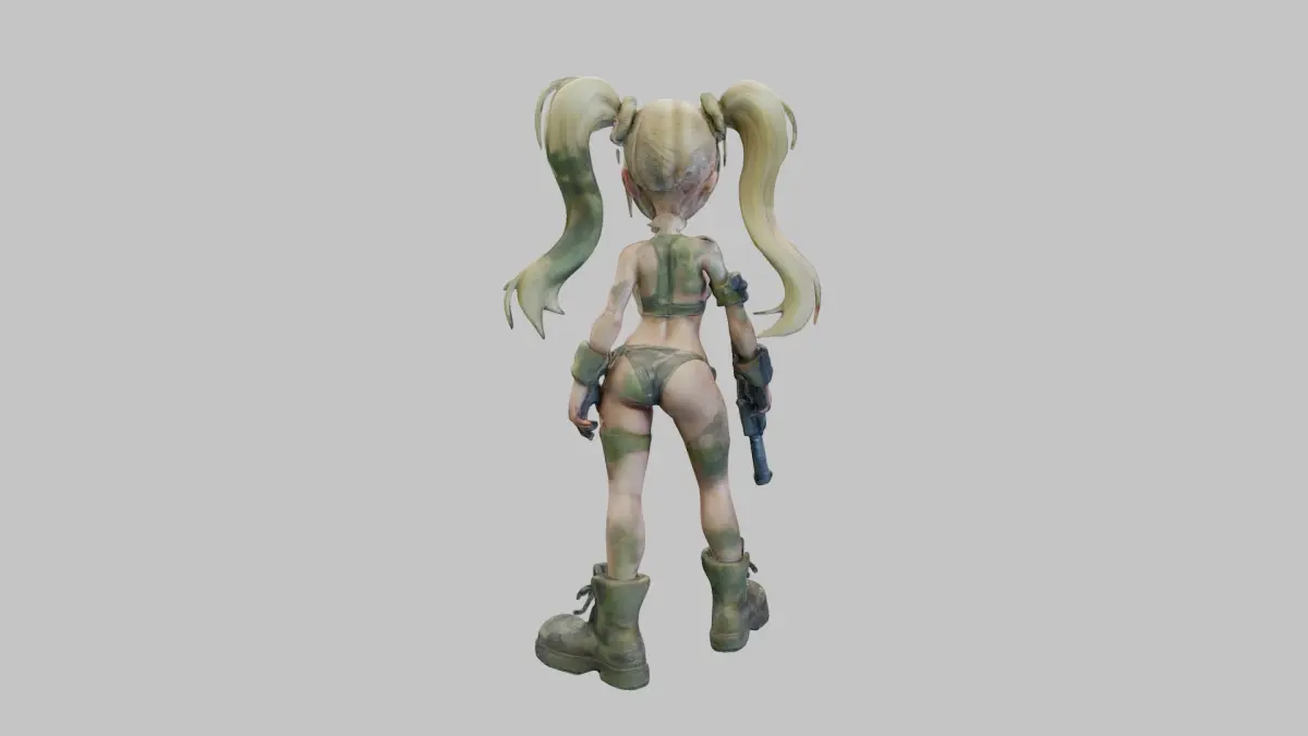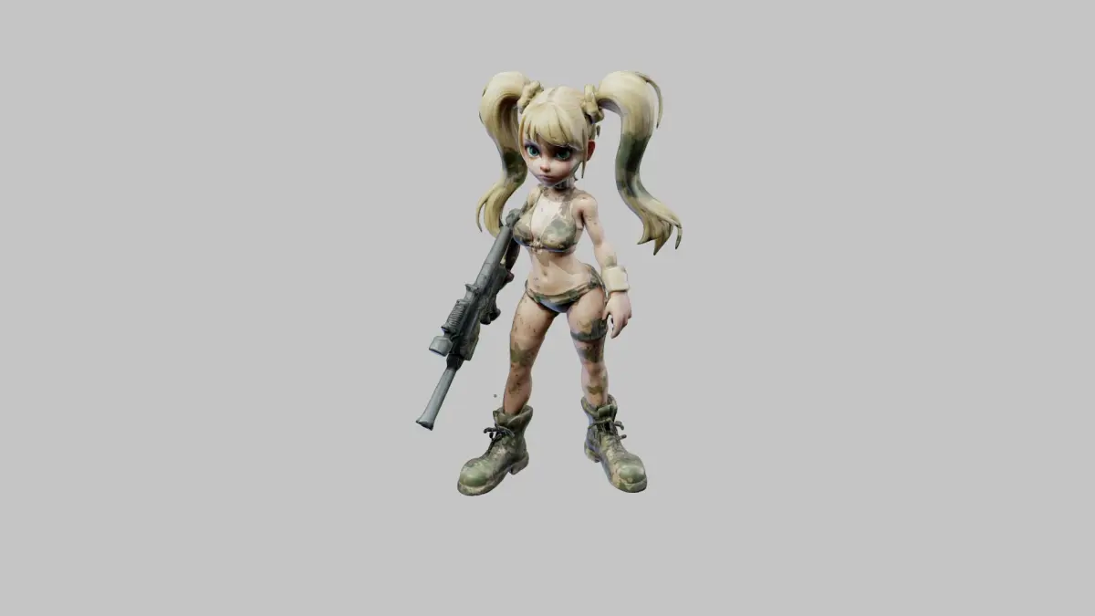 Blonde Twintailed Mercenary Girl 3D model textured in various formats.