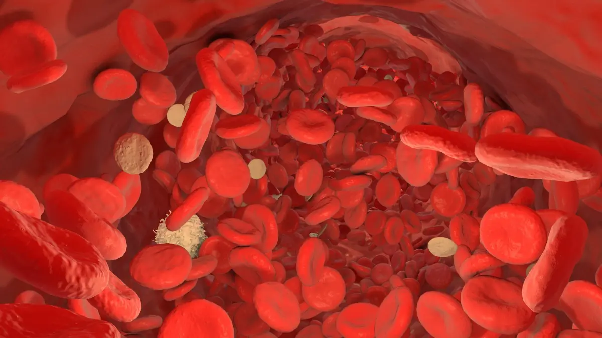 Animated and editable 3D bloodstream scene with blood cells for medical and scientific visualization. Includes multiple types of blood cells: 4 variations of red blood cells (erythrocytes), 1 type of lymphocyte, and 1 type of platelet.