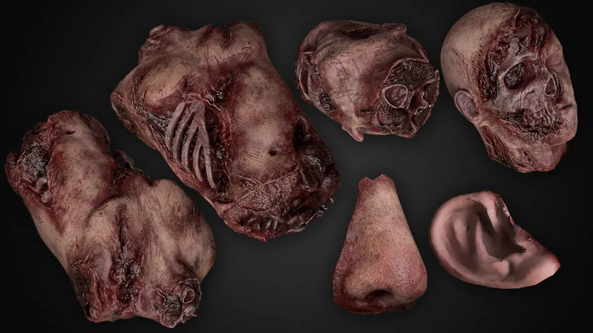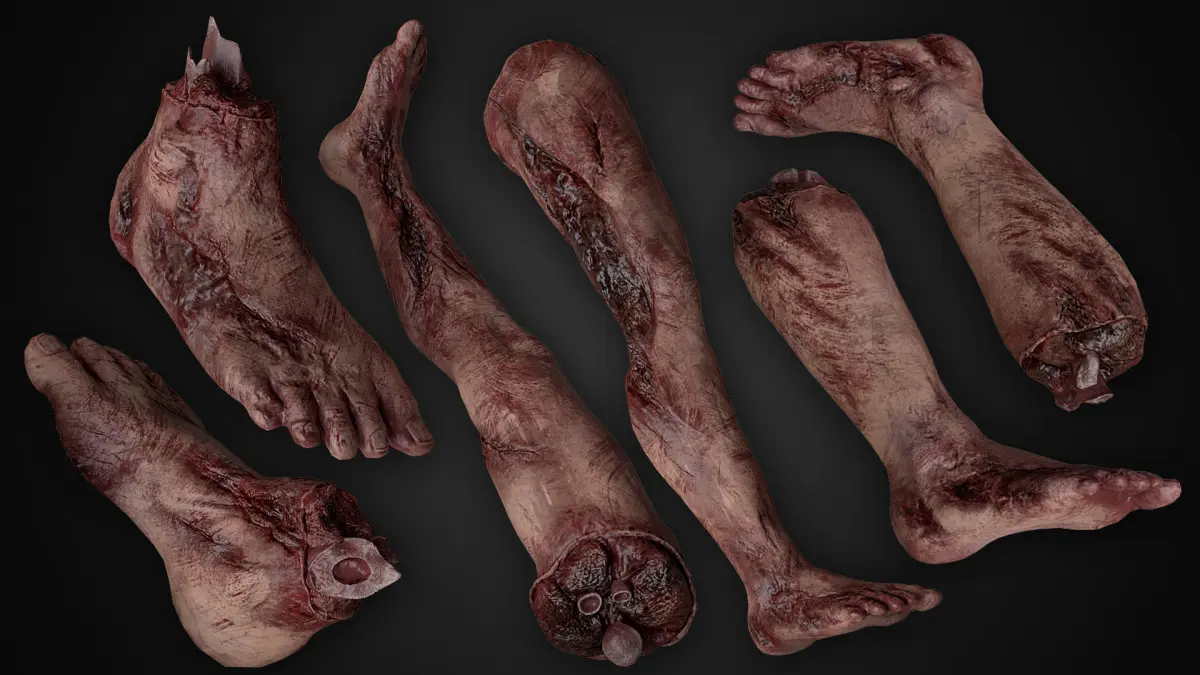 High-quality realistic low-poly 3D models of different Bloody Human Remains ( Rigged )Models have skeleton rig and physical assets. You can set up models in any pose.The model is ready for use in games and other real-time applications.Product Include: 3 type of rigged arms3 type of rigged legstorsoHead2 type of rigged bodyFingersNoseEarDead bodyes in poses.