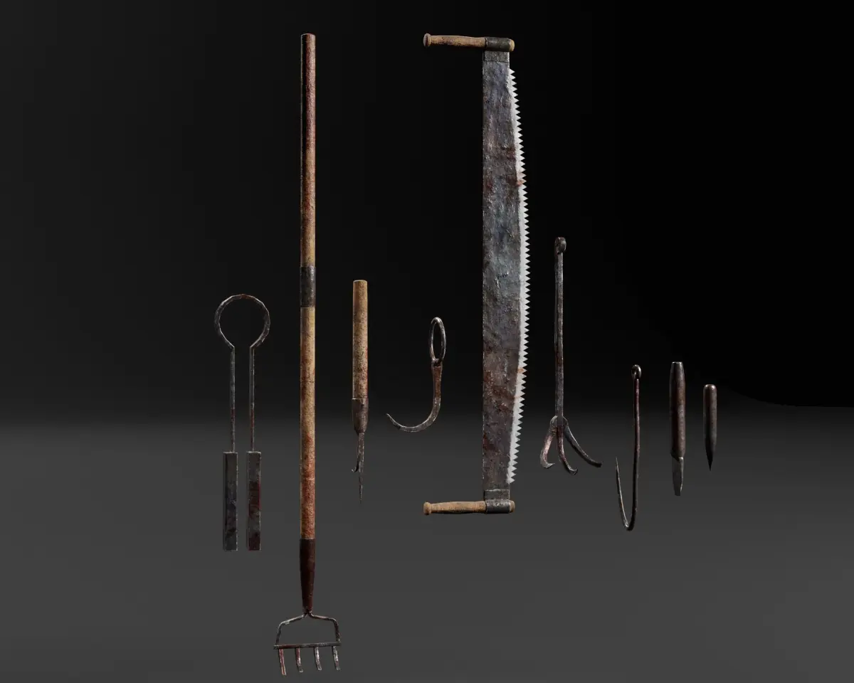 Bloody Torture Tools 3D Model. This model contains the Bloody Torture Tools itself