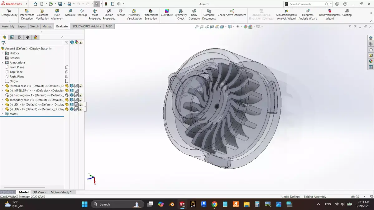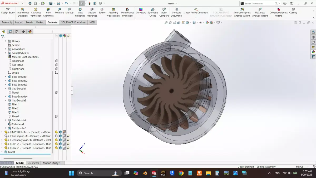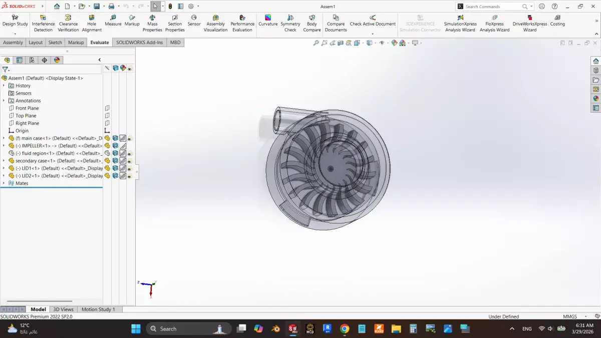 blower designed using solidworks 2018 available in sldprt ,assembly ,stl,and blend formates also simulation study included in case you need to do the simulation the dimentsions are about 53 mm diameter and about 22.5 mm height (the files includes two designs)