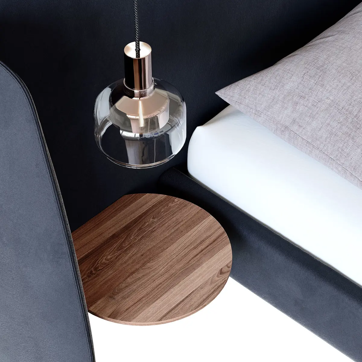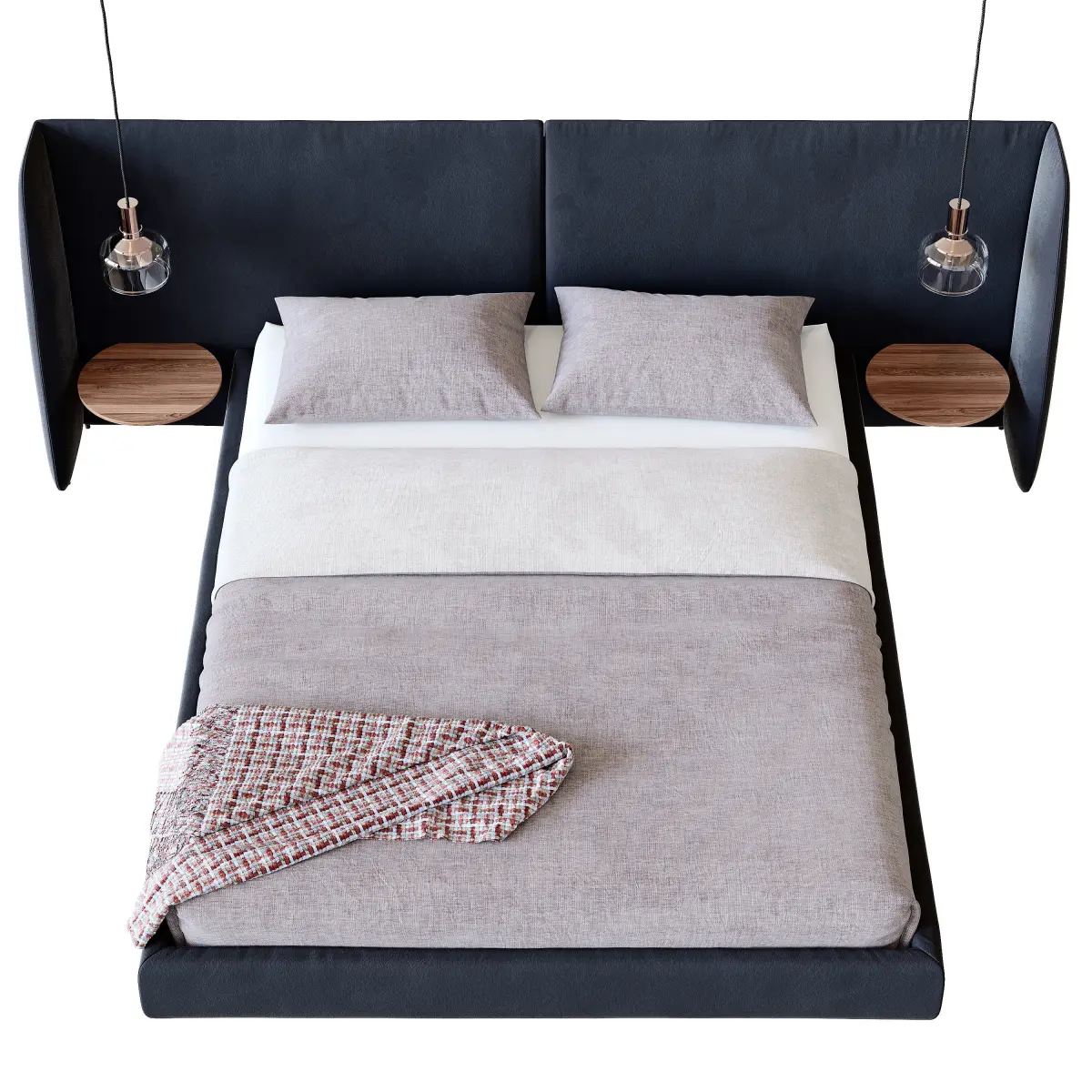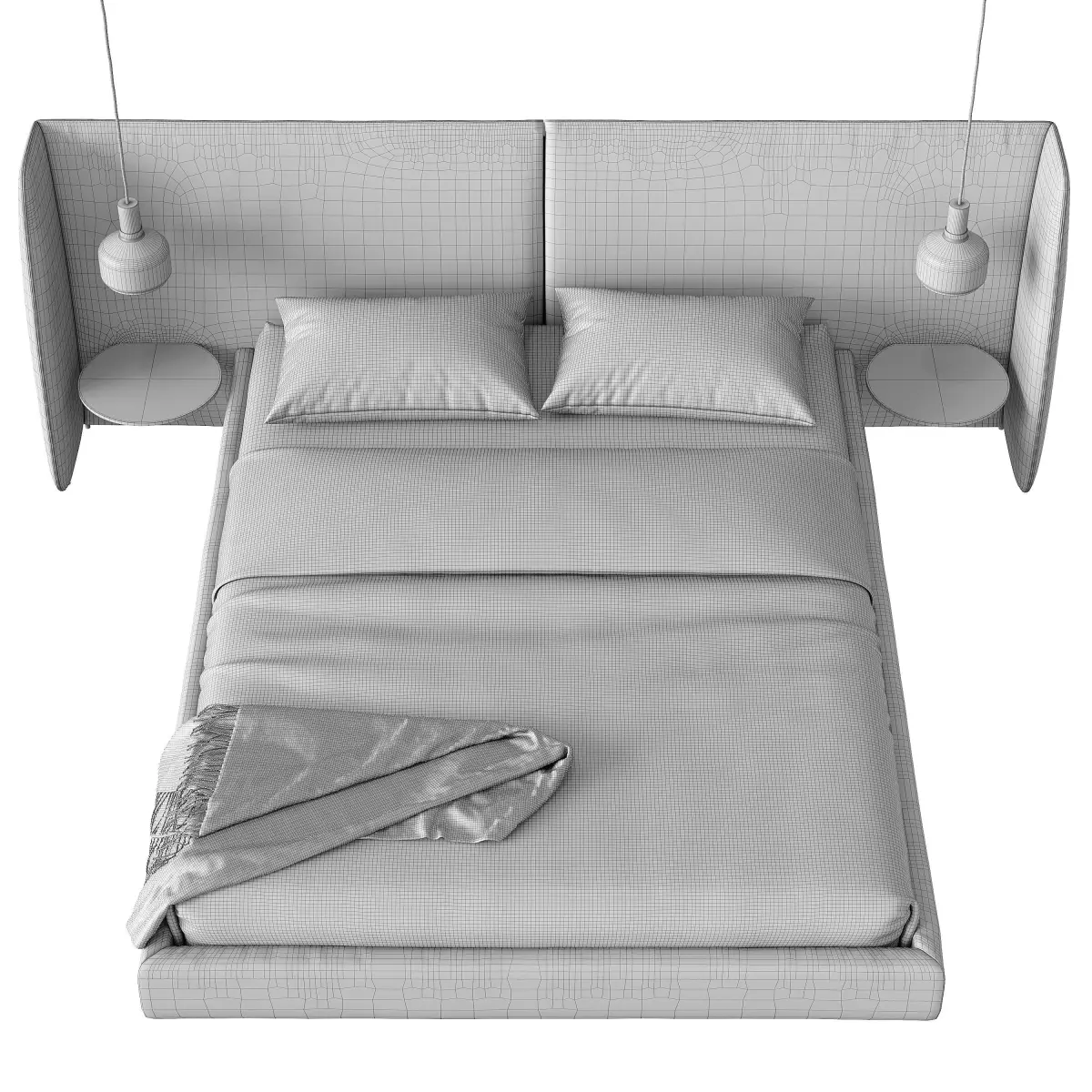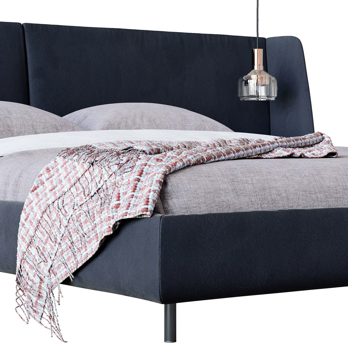 Bed: Hunker Queen Bed264,16 x 220,98 x 99,06 cmBed sheets: You May Duvet CoverLamp: Trace 3 Pendant Light17,78 x 210 cmPlaid: Chaperone Wool Throw132,08 x 182,88 cm