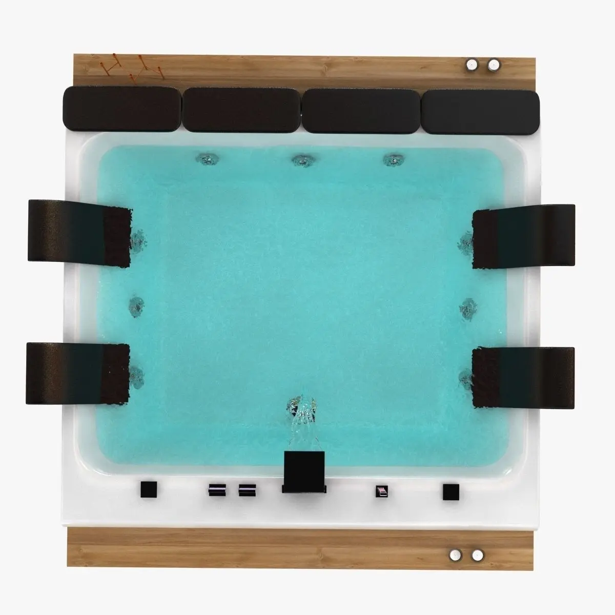 Double whirlpool controlTap assemblyCromo RelaxPop-up wasteHeadrestAir jetsOutletCushionDimensions :Isle 229 x 201 x 74 hPeninsula 229 x 215 x 74 hCorner 220 x 215 x 74 hOutlets : 9Air Jets: 35