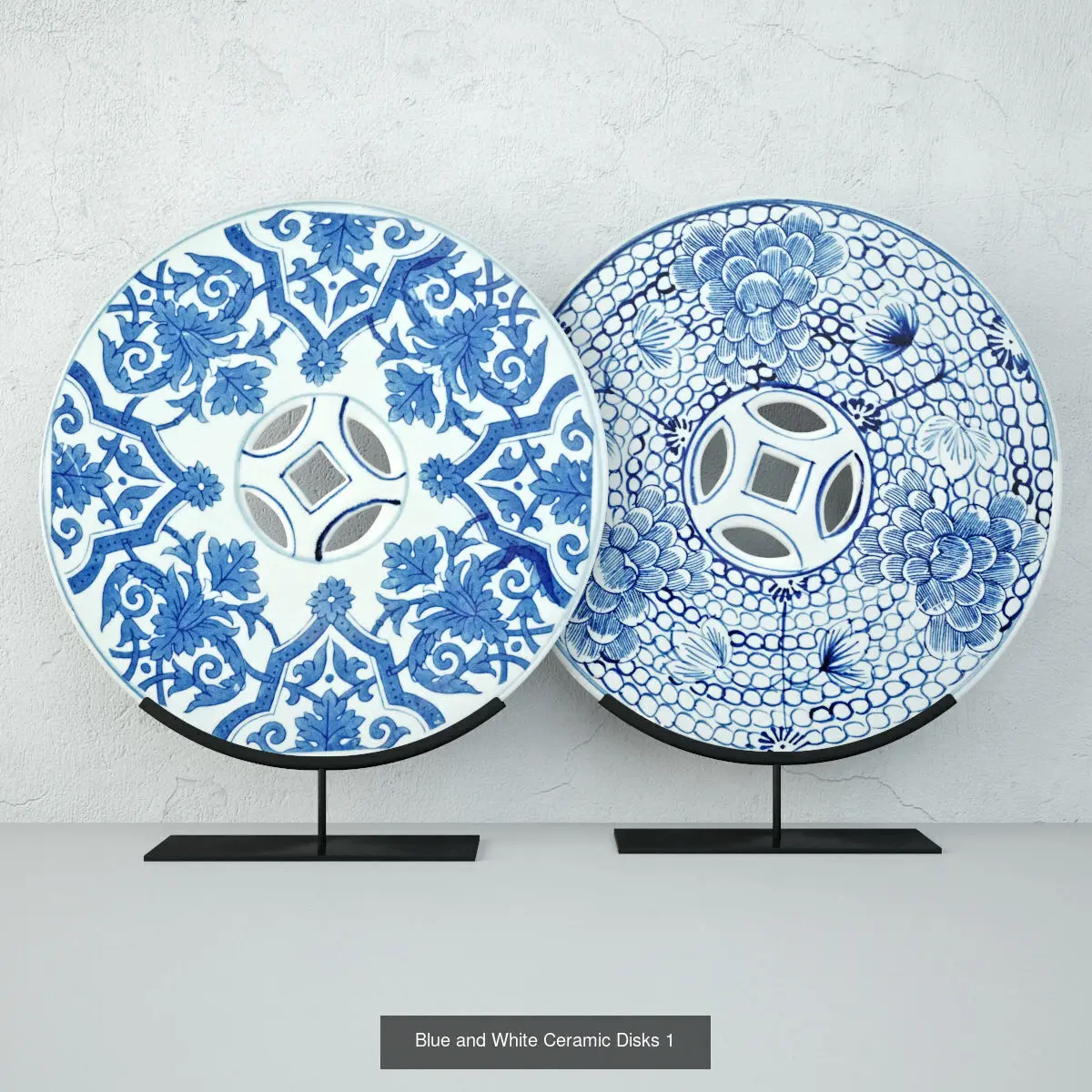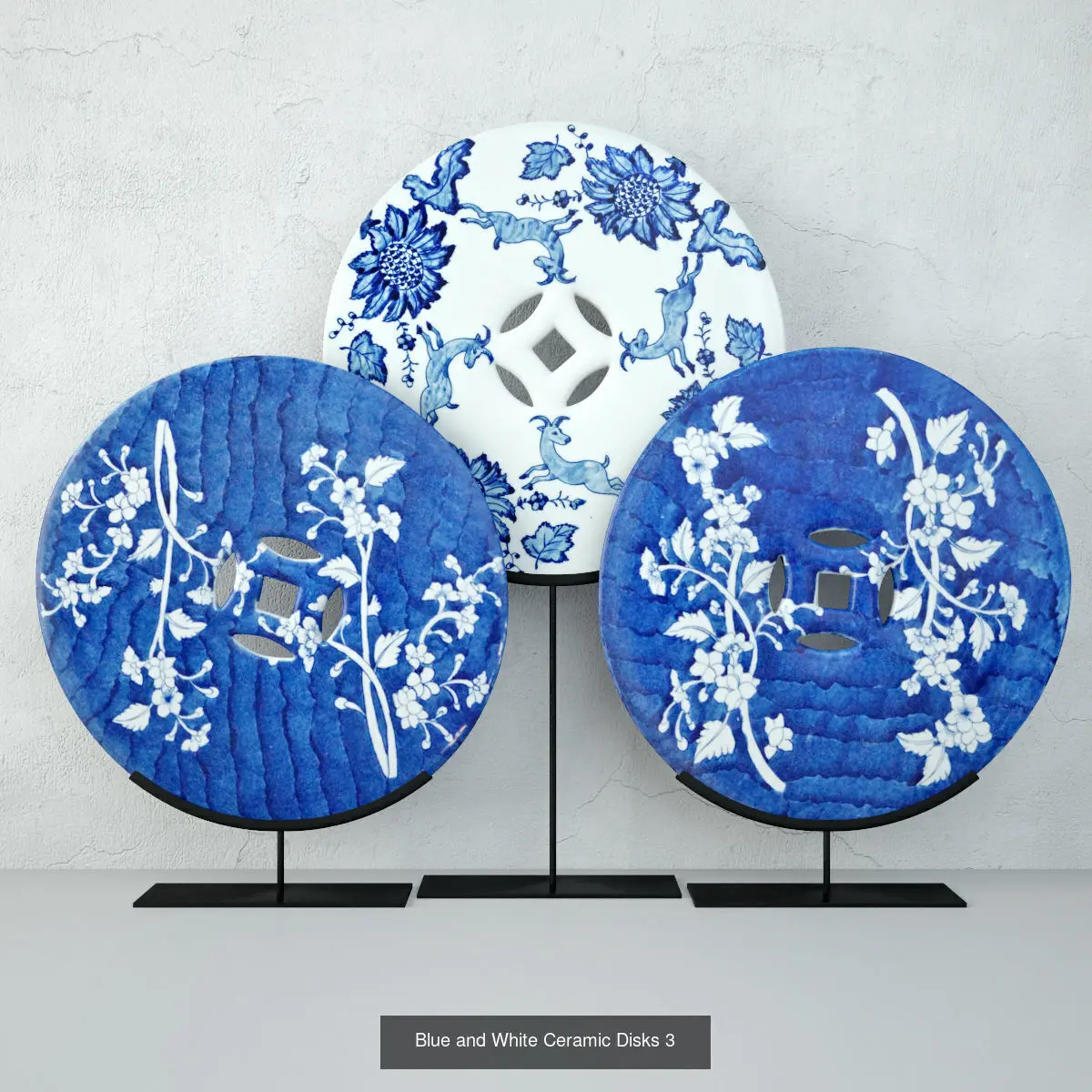 Buy Blue and White Ceramic Disks Collection 3D Model Pack