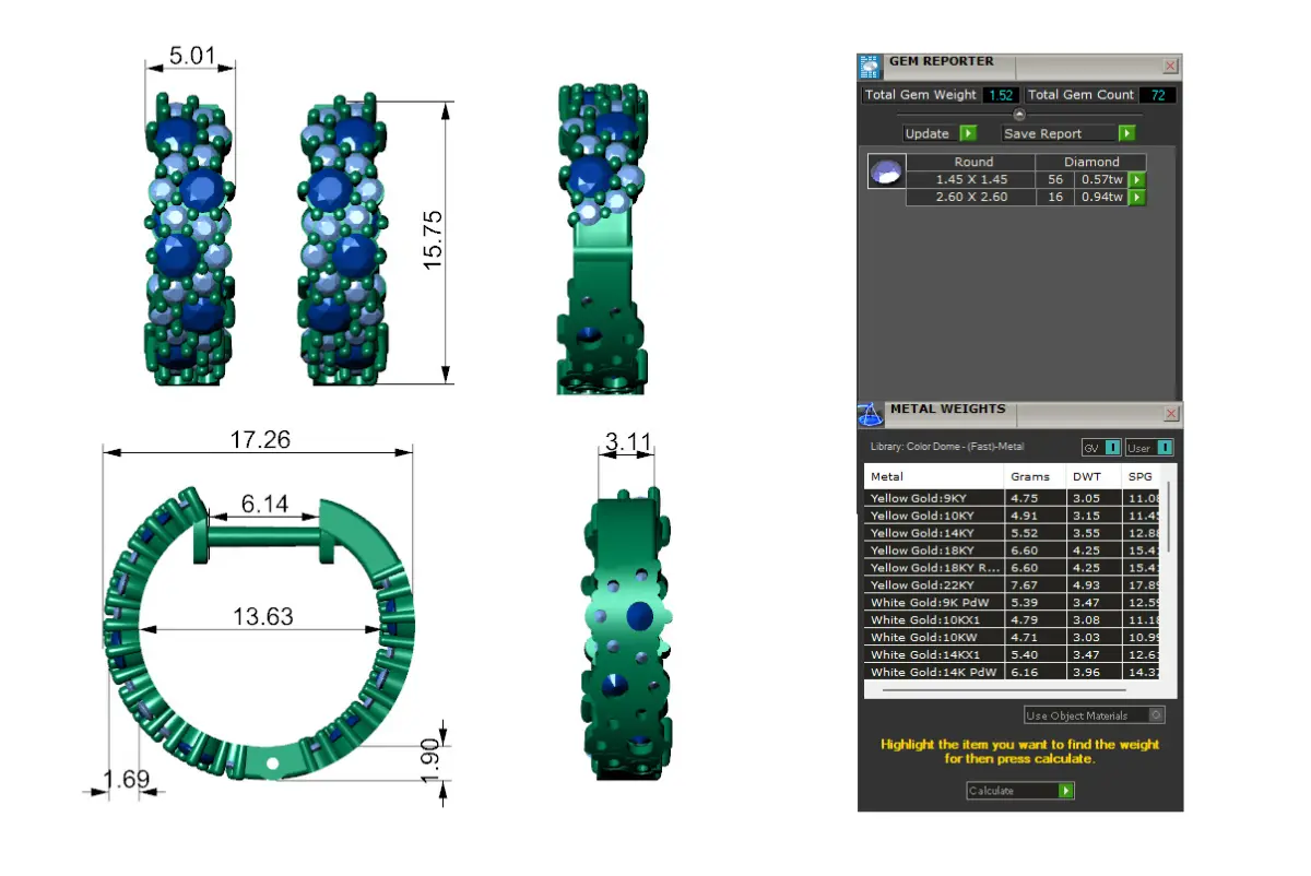 Blue and White Diamond Hoop Luxury Earrings 3D print model