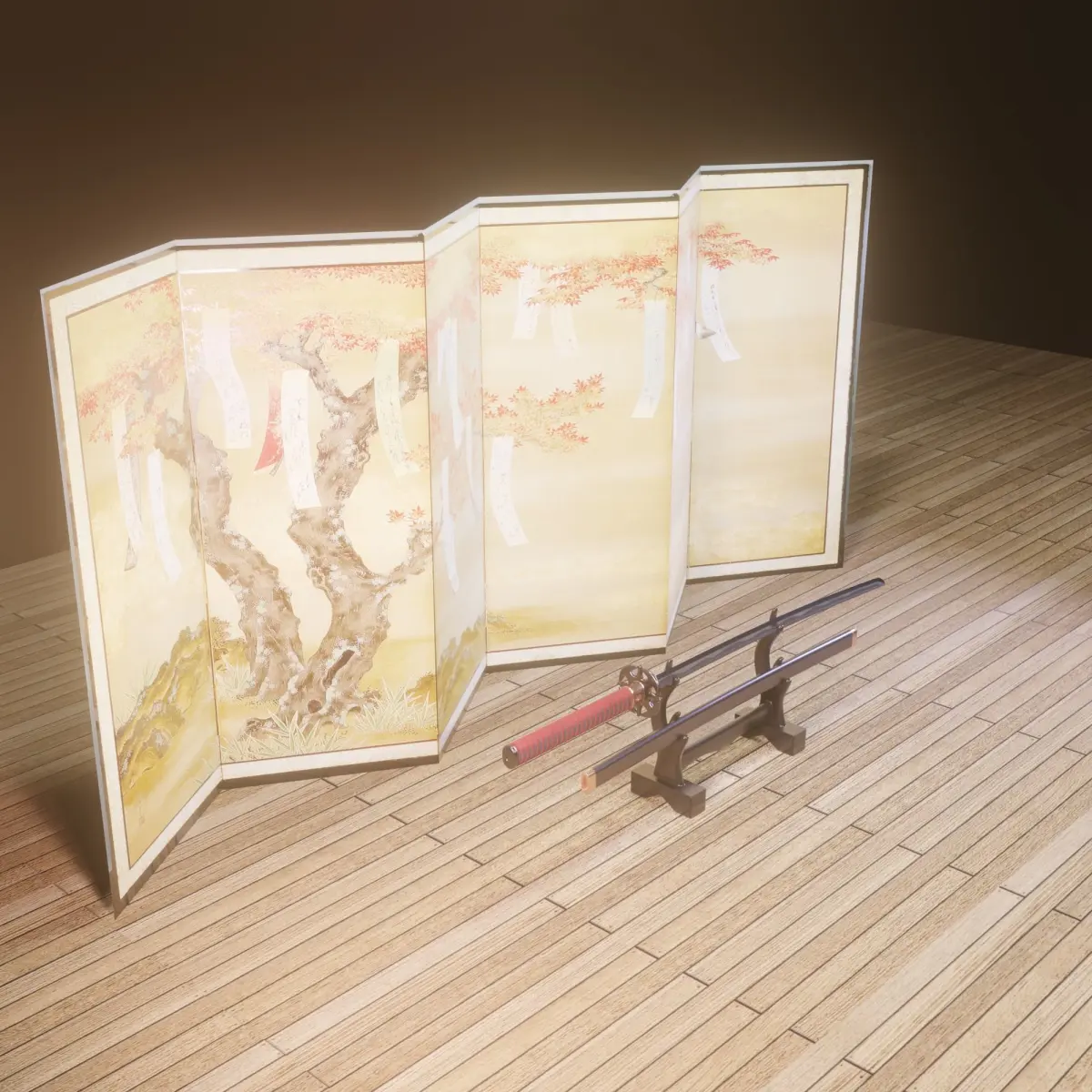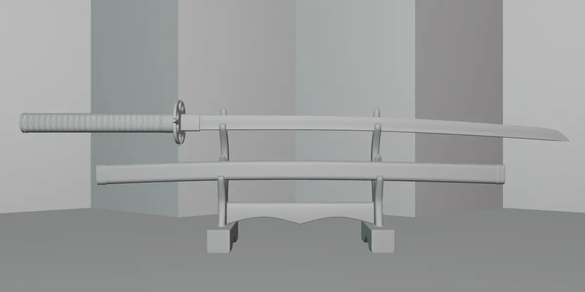 This contains realistic model of katana with blue blade in blender file, which contains seperate objects such as i.e., blade, handle, cloth, cover etc., and can be joined to single object with high resolution 2K textures and fbx file.