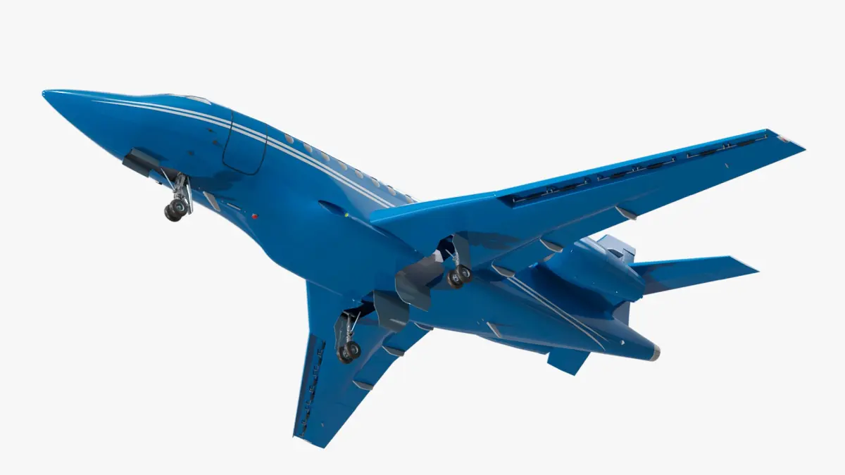 Blue Business Jet is a 3d model of modern private jet, showcasing luxurious design and advanced aerodynamics.
