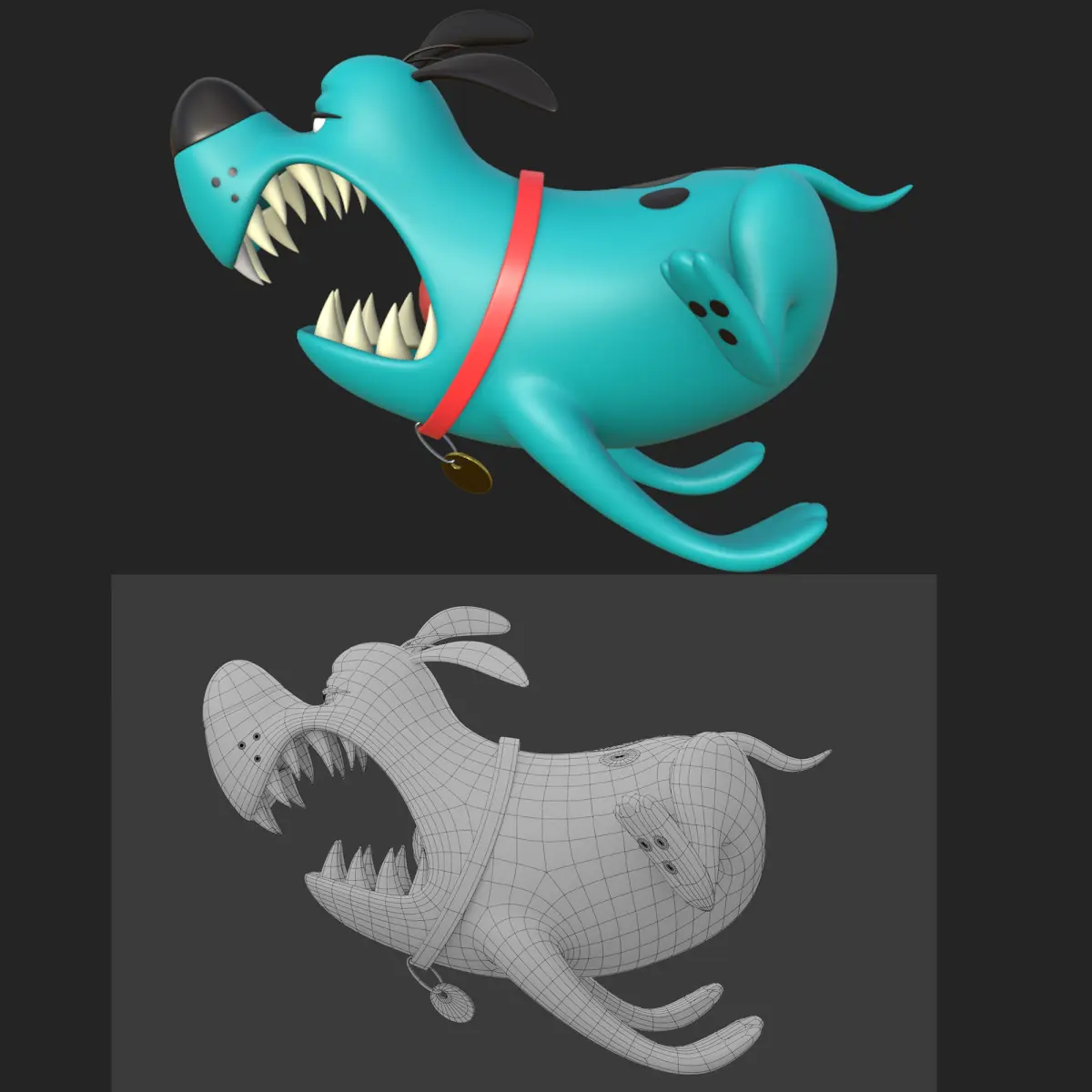 UDIM textures, dog 4096 x 4096png (base color, metallic, AO, normal, roughness)