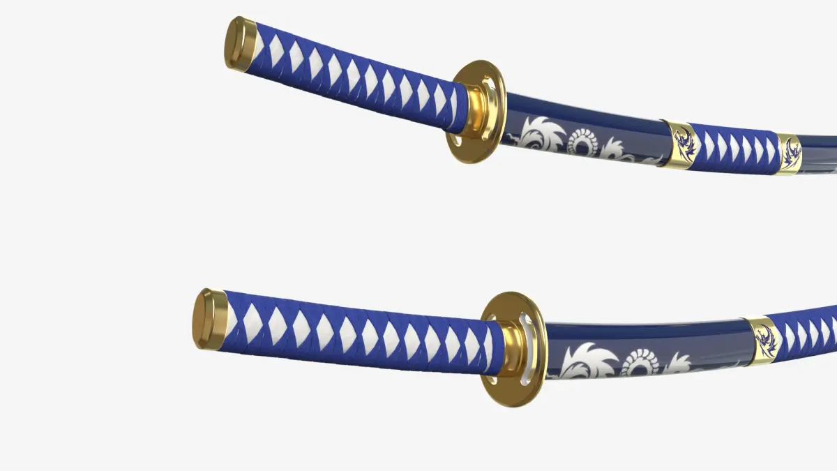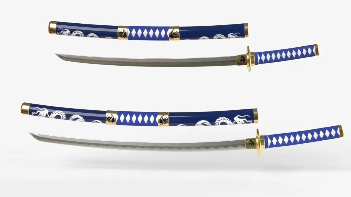 - Blue Double Bladed Samurai Katana Wakizashi FBX in format, including textures.