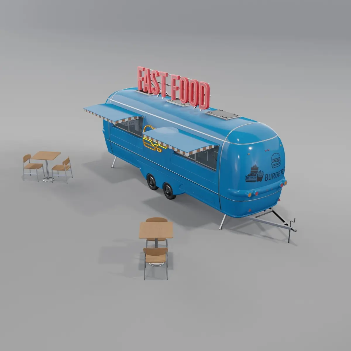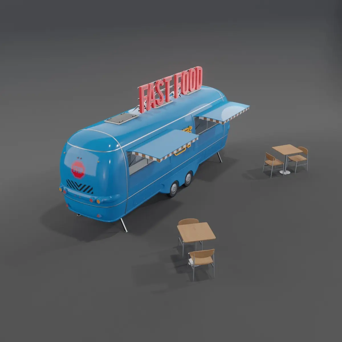 Blue Fast Food Trailer Low-poly 3D model