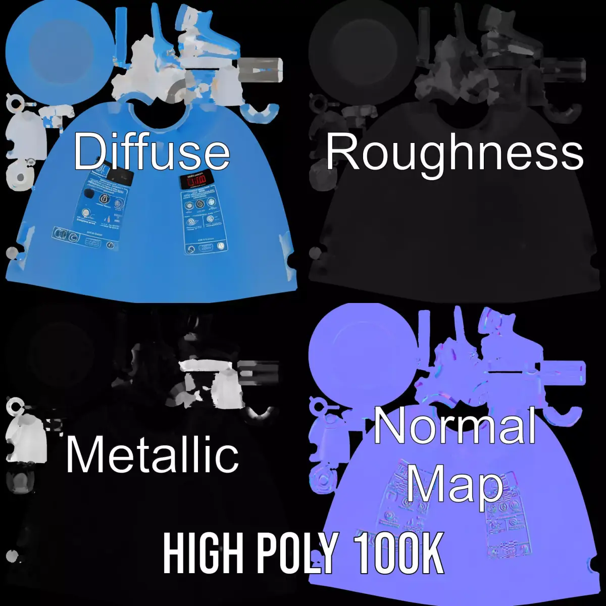 The model's textures are PBR, Diffuse, NormalMap, and reflection/roughness/metallic, suitable for any modern rendering engine. All models are accurately unwrapped with no overlapping UVs.