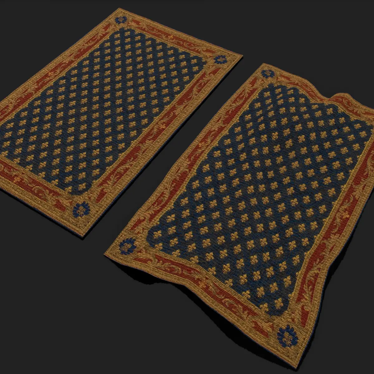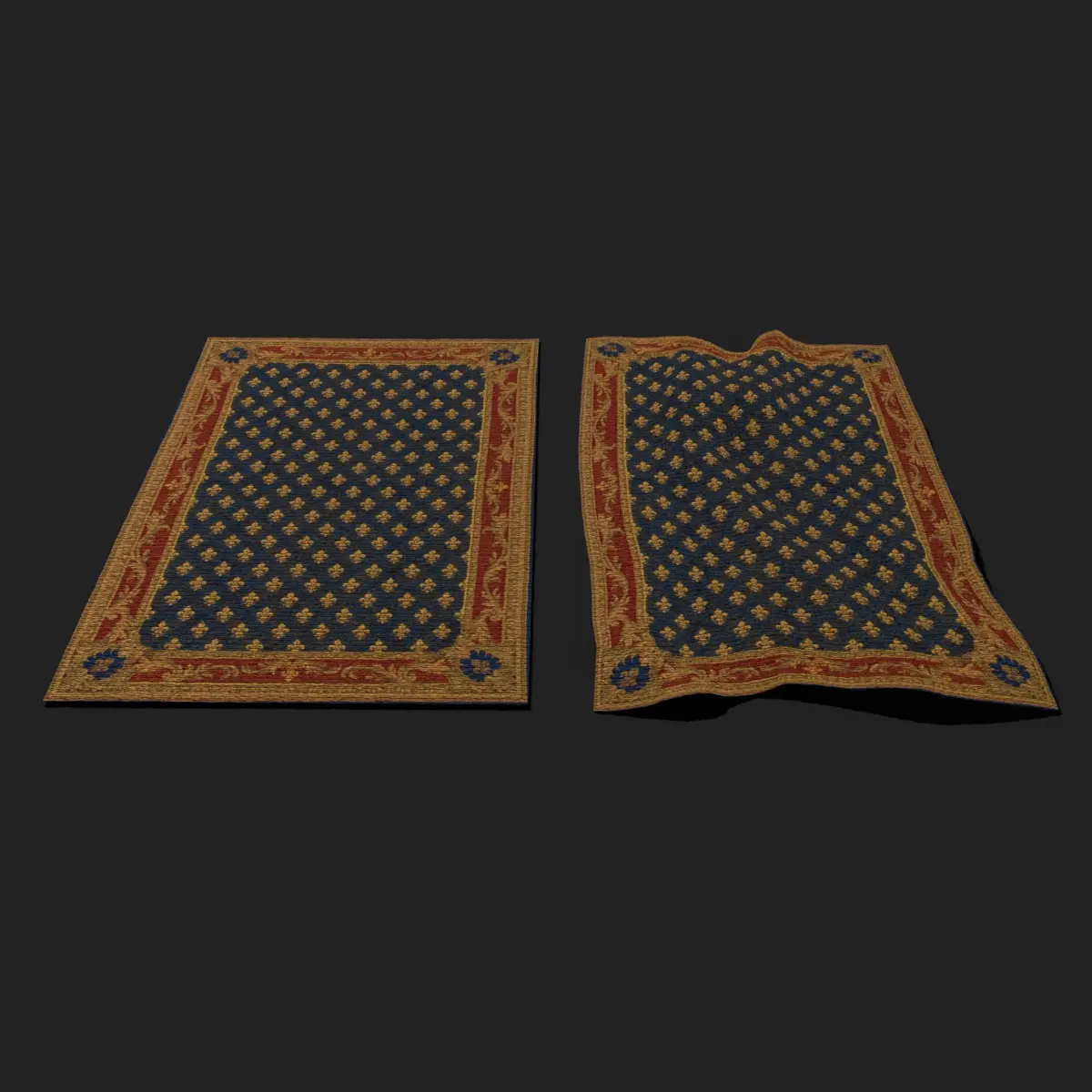 Blue Fleur Tapestry 3D Model. PBR Texture available in 4096 x 4096 Maps include : Basecolor, Normal, Roughness, and Metallic. All Preview renders were done Marmoset Toolbag 3.08 Scaled to real world scale. Includes 2 Models 1 Material. Customer Service Guaranteed. From the Creators at Get Dead Entertainment. Please like and Rate! Follow us on FaceBook and Instagram to keep updated on all our newest models.