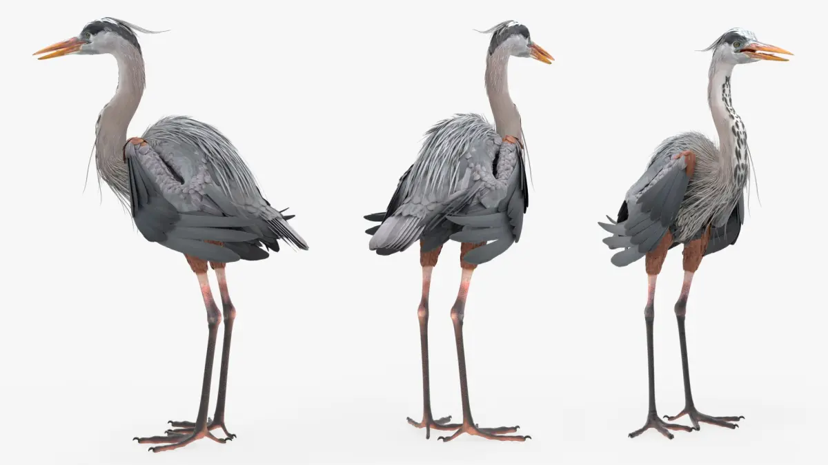 Blue Heron Bird For Blender is a three-dimensional model of the Great Blue Heron (Ardea herodias), a large wading bird found in wetlands across North and Central America.