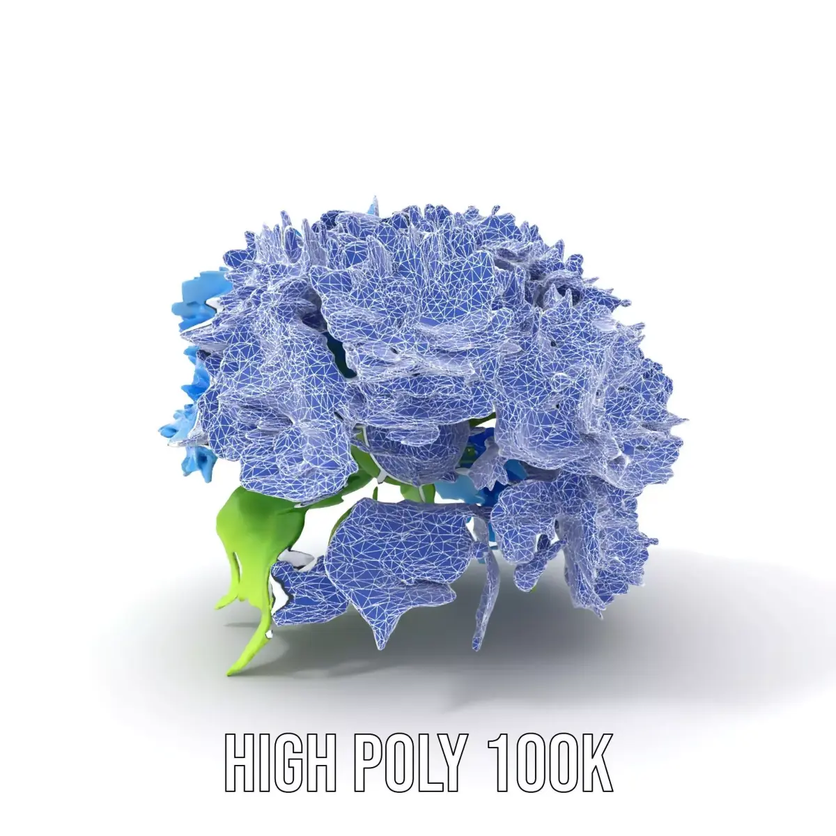 This Blue Hydrangea Blossom model pack features a realistic, vibrant flower perfect for nature scenes and decor projects. Each model is crafted with high-quality 3D geometry and textures in PBR, Diffuse, NormalMap, and reflection/roughness/metallic formats. Ideal for use in animations, virtual reality environments, gaming, and botanical visualization. The model boasts different levels of detail, making it versatile for various applications, including mobile (1000 triangles), environment (10,000 triangles), and high-end rendering (100,000 triangles). Textures are high-resolution at 4096x4096, ensuring exceptional detail and realism across all platforms. Accurate UV mapping ensures no overlapping for seamless integration. The model is compatible with 3ds Max, Maya, Cinema4D, Blender, Vray, Corona, Cycles, Unity, and Unreal. The first image is the reference used for creating the 3D model. It is important to carefully evaluate the quality of the model by examining the preview images that display the topology and polygonal mesh. These previews (WIRE and WEB 3D Preview) clearly demonstrate how accurately the model matches the original reference and how well the geometry has been executed. If you enjoy this model, please like and leave a comment!