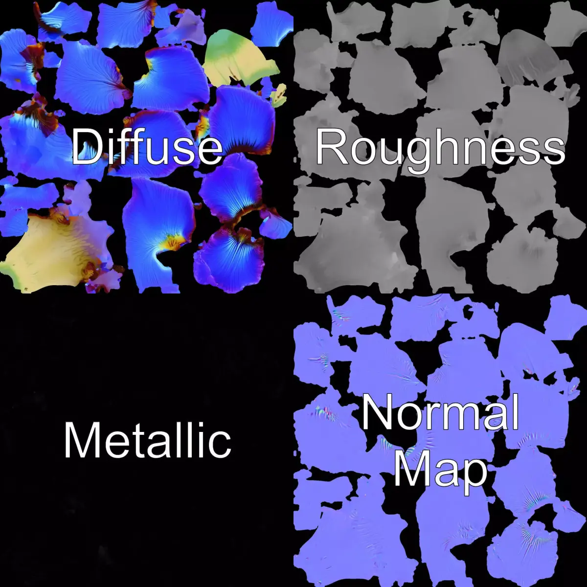 This stunning Blue Iris Flower model pack captures the intricate beauty of the iris flower with exquisite detail and vibrant colors. Ideal for use in garden visuals, educational tools, VR environments, and as a centerpiece in artistic displays. Each model has three levels of detail: low-poly (1000 triangles for mobile), middle-poly (10,000 triangles for environment), and high-poly (100,000 triangles), which allows for the use of this model in production rendering (such as 3ds Max, Maya, Cinema4D, Blender, Vray/Corona/Cycles and all other), game engines (Unity and Unreal compatible), and interactive presentations, providing a choice of detail based on the LOD System principle. The model's textures are PBR, Diffuse, Normal Map, and reflection/roughness/metallic, which are suitable for any modern rendering engine. All models are accurately unwrapped and have no overlapping UV, and all textures are 4096x4096 in size. Perfect for diverse projects requiring a lifelike representation of an iris flower. If you enjoyed this model, please like and leave a comment.
