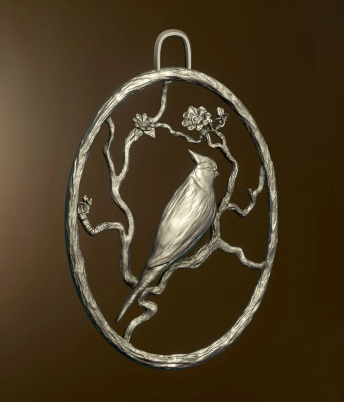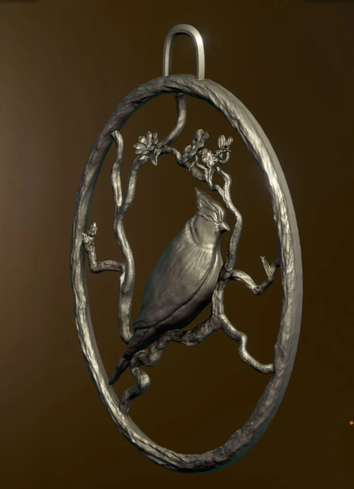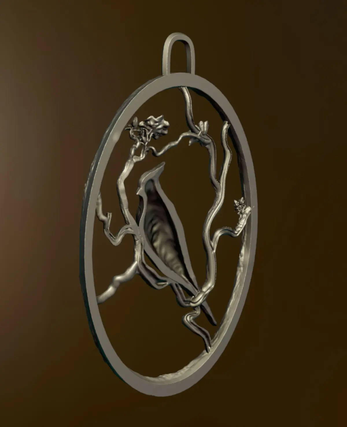 Bring the beauty of nature into your creations with this unique bird and branch pendant design. Carefully crafted to capture the serene elegance of a perched bird amidst blooming branches, this pendant is perfect for jewelry designers, artists, and 3D printing enthusiasts who seek a high-detail, nature-inspired piece.Dimensions:Height: 6 cm (60 mm)Width: 4 cm (40 mm)Thickness: 2 mmKey Features:• Highly Detailed Design – Realistic bird feathers and naturalistic twisting branches offer a sophisticated and artistic feel.• Lightweight Structure – 2 mm wall thickness ensures durability without adding extra weight, making it ideal for earrings, necklaces, charms, or ornaments.• Nature and Wildlife Theme – Perfect for customers who love birds, botanical elements, and organic designs.• Ready for 3D Printing – Optimized mesh suitable for resin printing, jewelry production, and CNC carving.• Versatile Usage – Can be used as a pendant, keychain, decorative charm, or even as a home décor element.Ideal for:Jewelry designers, gift makers, nature lovers, birdwatchers, and anyone looking to add a unique and elegant touch to their handmade or 3D printed products.