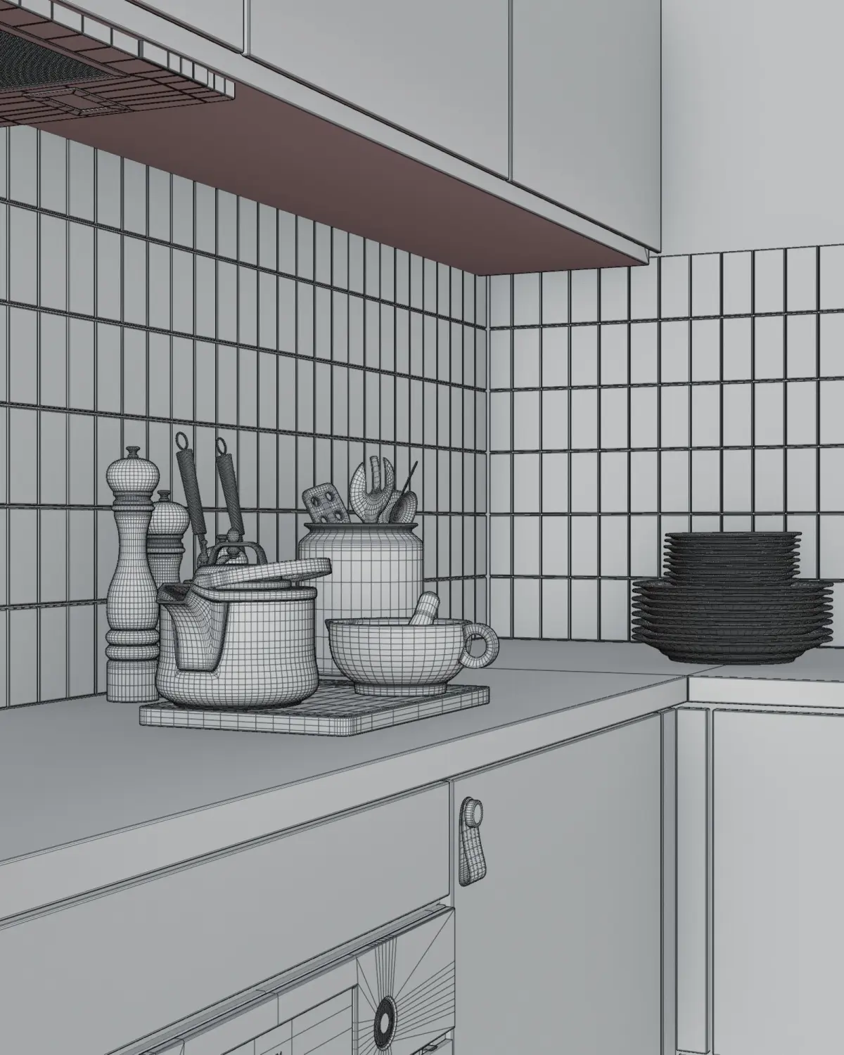 Blue Kitchen interior scene, made with Blender 3.5, rendered with Cycles
