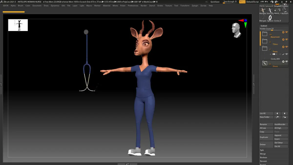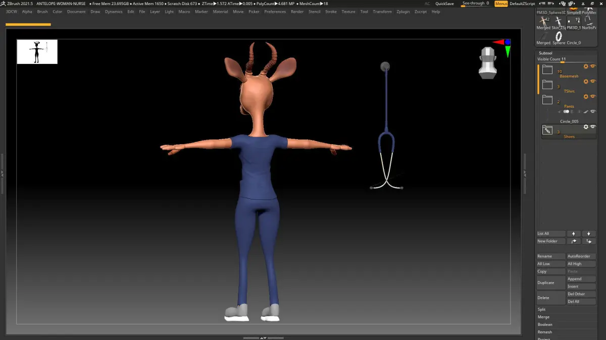 Blue Nurse Antelope - ZBrush Character Basemesh 3D model