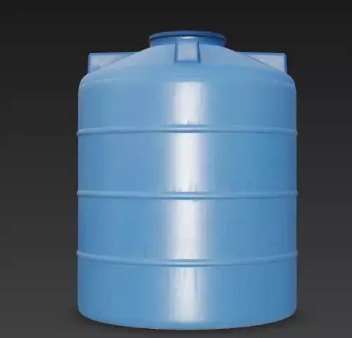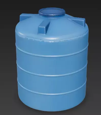 The Overall Concept This asset is a standard vertical water storage tank, commonly made of heavy-duty plastic (polyethylene). It is an essential utility object found on rooftops, farms, construction sites, or residential backyards for storing clean water.