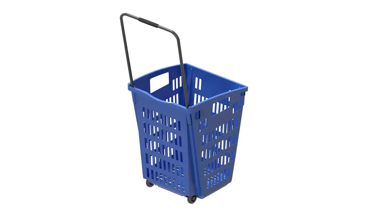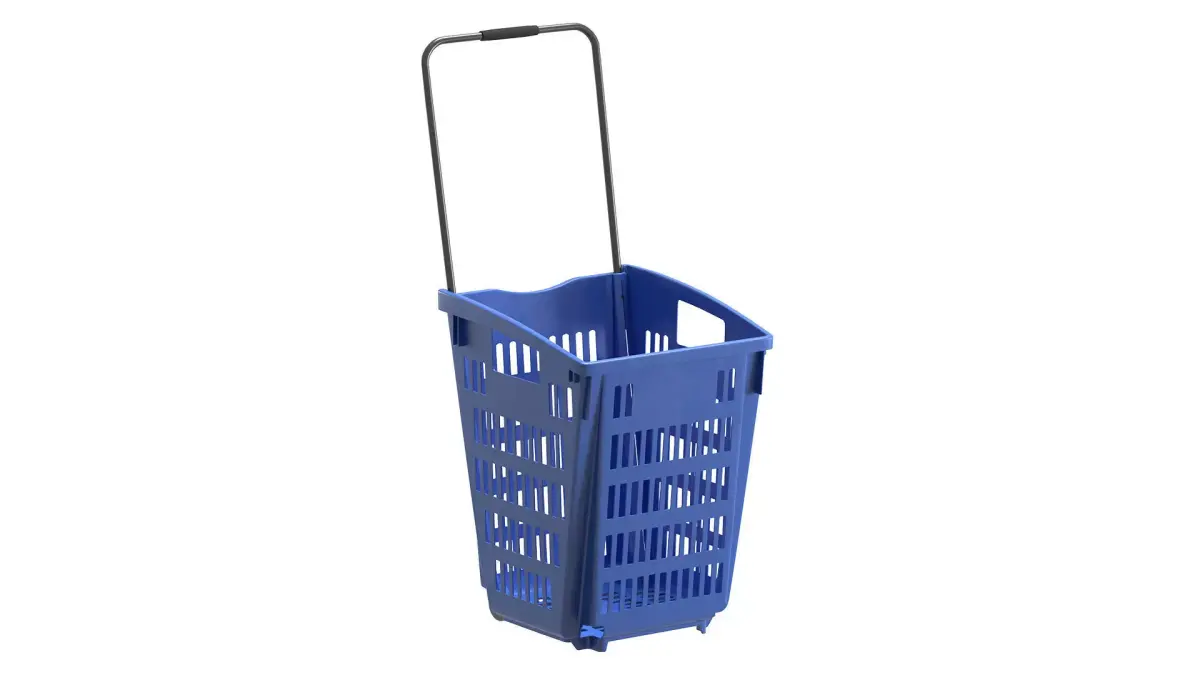 Blue plastic shopping cart