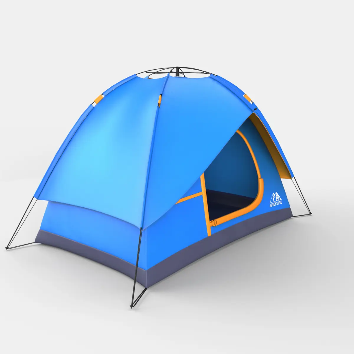 A spacious camping tent perfect for outdoor getaways. The tent is made of waterproof polyester material and features a vibrant blue color.