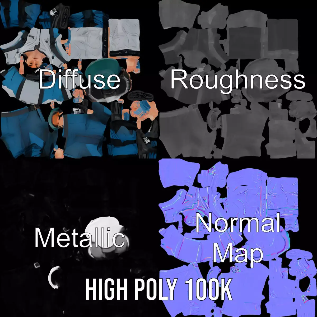The Blue Racing Jumpsuit model pack captures the sleek and dynamic look of a professional racer. Each model has 3 levels of detail: low-poly (1000 triangles for mobile), middle-poly (10,000 triangles for environment), and high-poly (100,000 triangles), which allows for the use of this model in production rendering (such as 3ds Max, Maya, Cinema 4D, Blender, Vray/Corona/Cycles, and all others), game engines (Unity and Unreal compatible), and interactive presentations, providing a choice of detail based on the LOD System principle. This versatile model can be used in automotive simulations, virtual reality training modules, and as an asset in racing games. Its PBR textures, including Diffuse, NormalMap, and reflection/roughness/metallic, are suitable for any modern rendering engine. All models are accurately unwrapped and have no overlapping UVs, with all textures being 4096*4096 in size. Please like and leave a comment for the model if you enjoyed it.