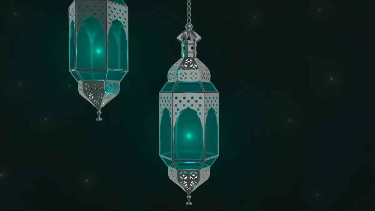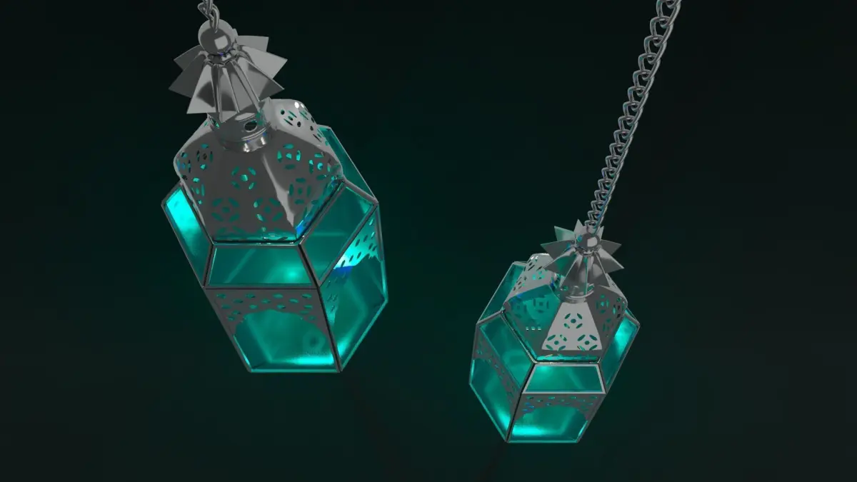 out of sacle 3D model of Ramadan fanous lantern Islamic-Scene includes lightings and materials ready for instant rendering