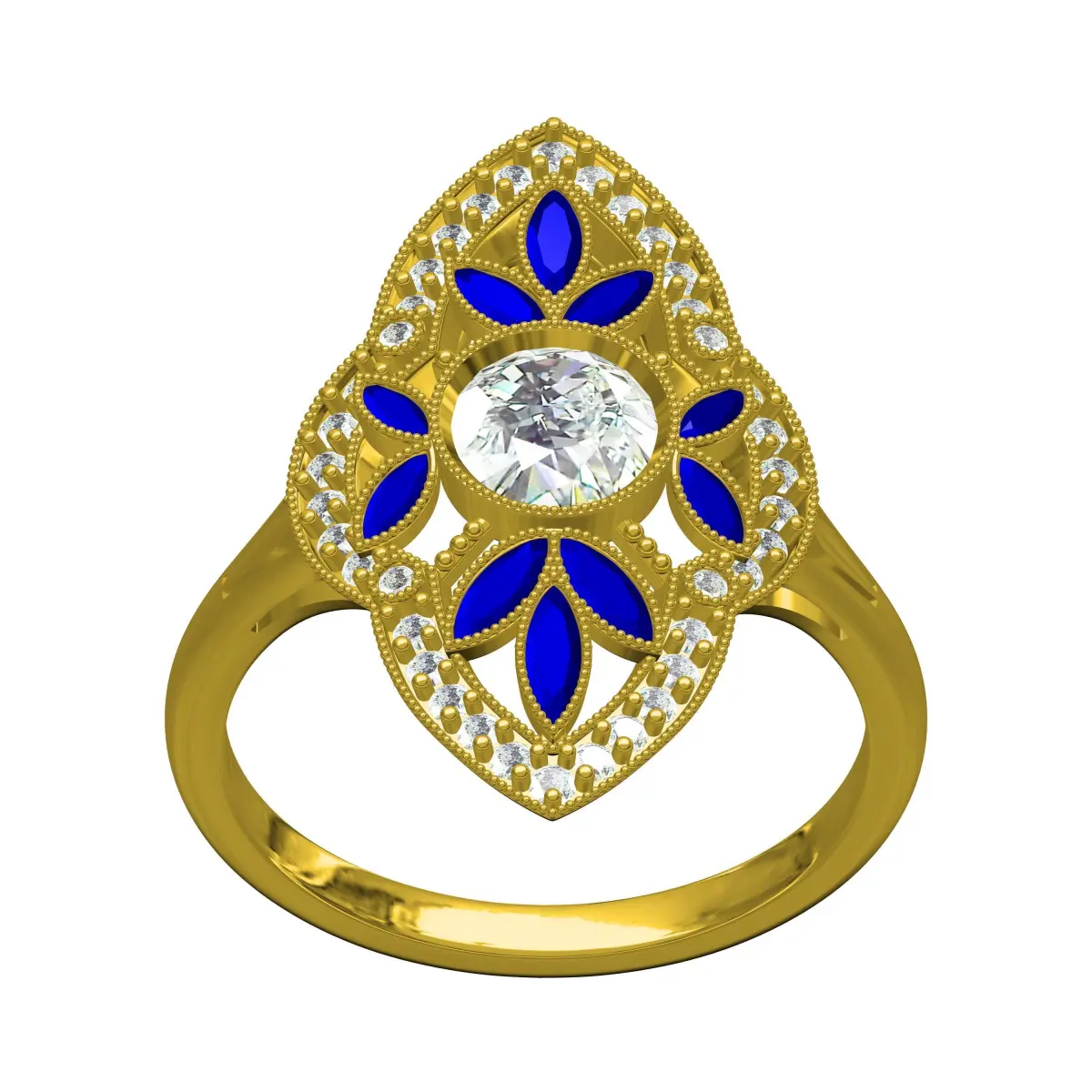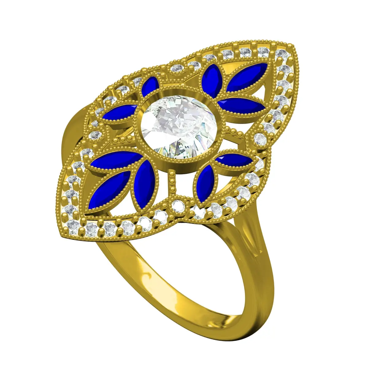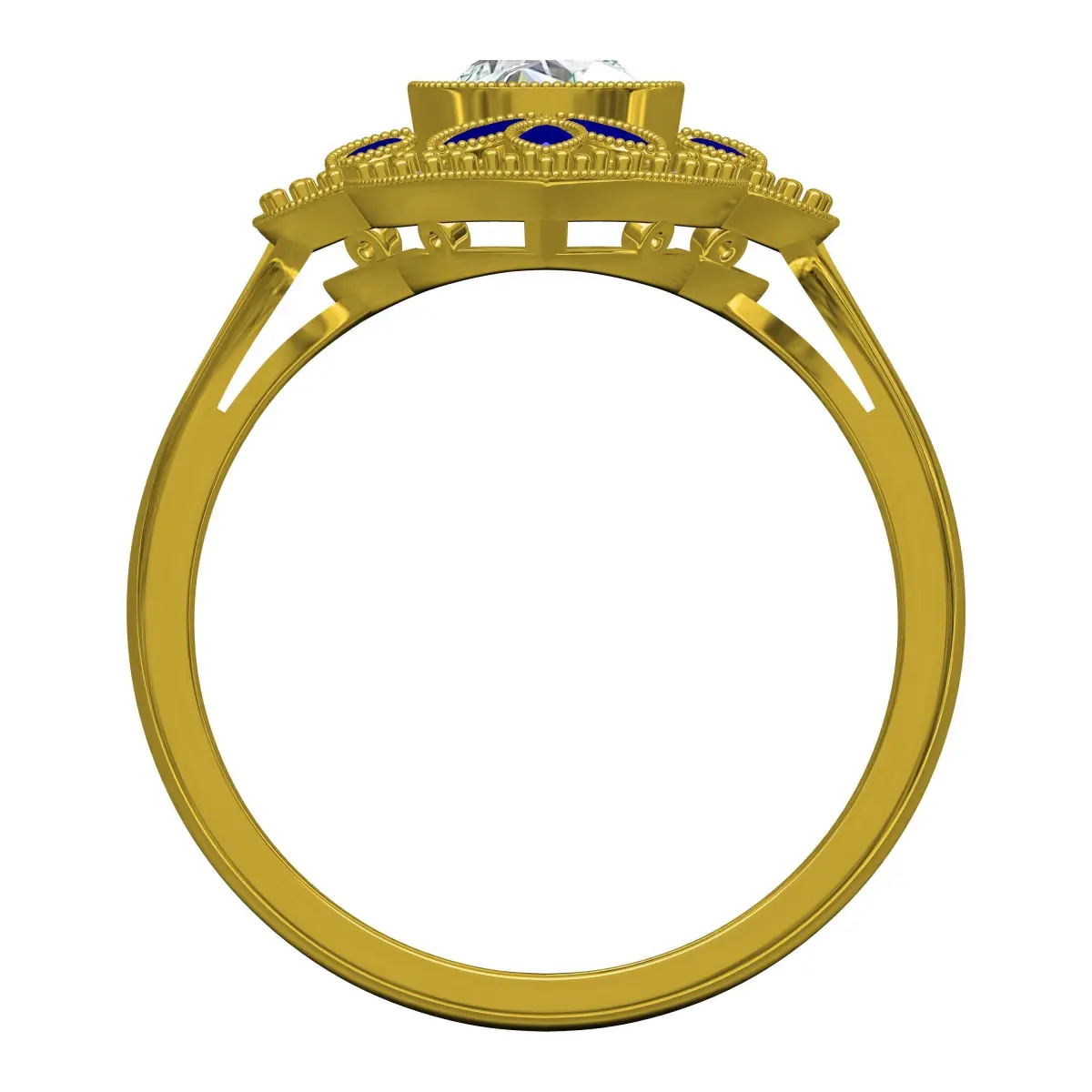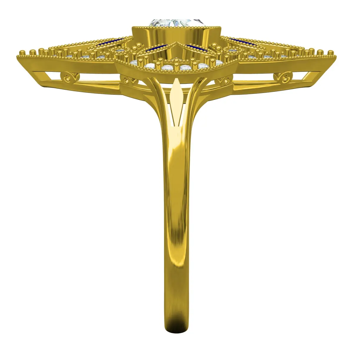 Blue Sapphire Marquise and Round Diamond Art Deco Ring