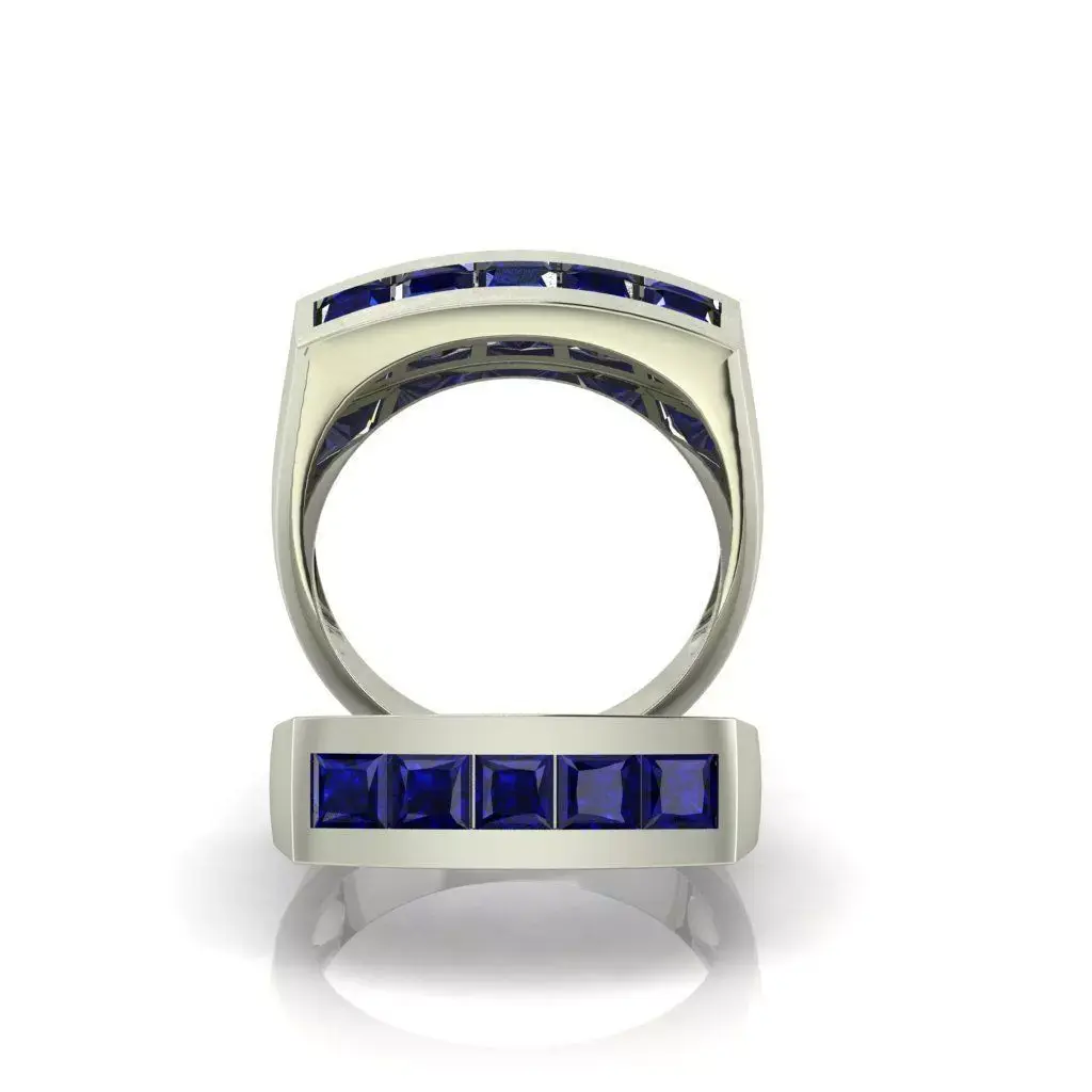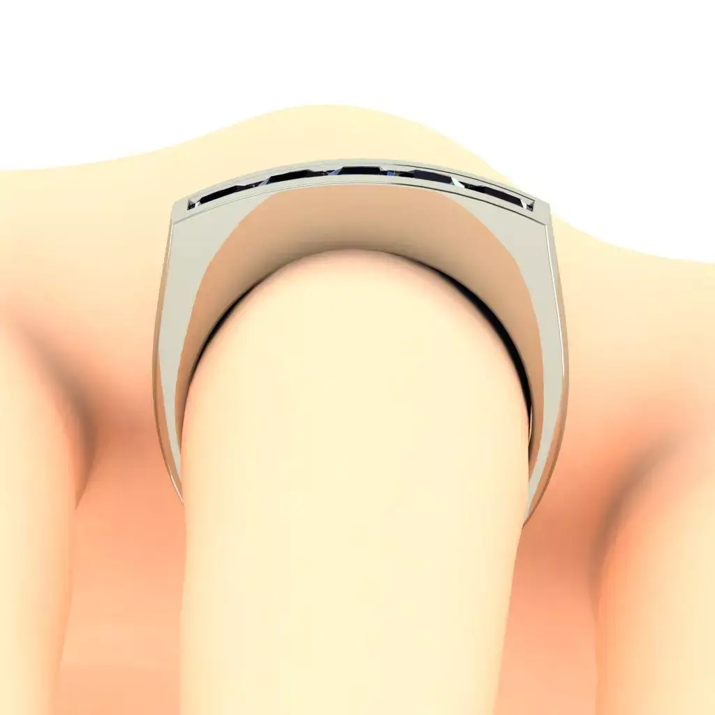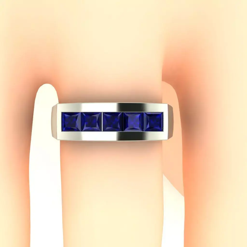 This men’s ring features five 3.5 mm Princess Cut stones securely set on the top. The stone color can be customized according to your preference.