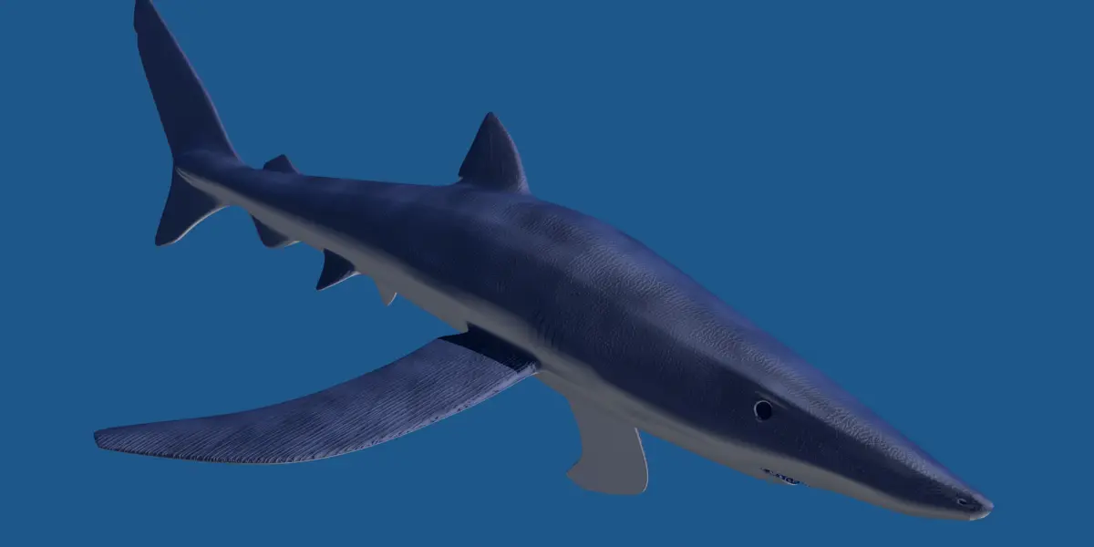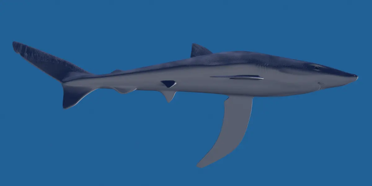 Blue Shark model mesh, these models are sold just as bare meshes, ready for any further work, the included materials and textures were used to render the model imagery and are just a small bonus.